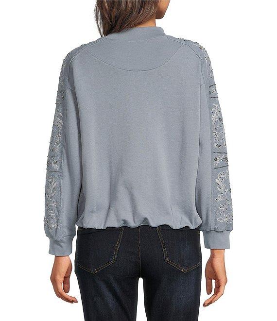 Democracy Embroidered Mixed-Media Mock Neck Long Sleeve Top