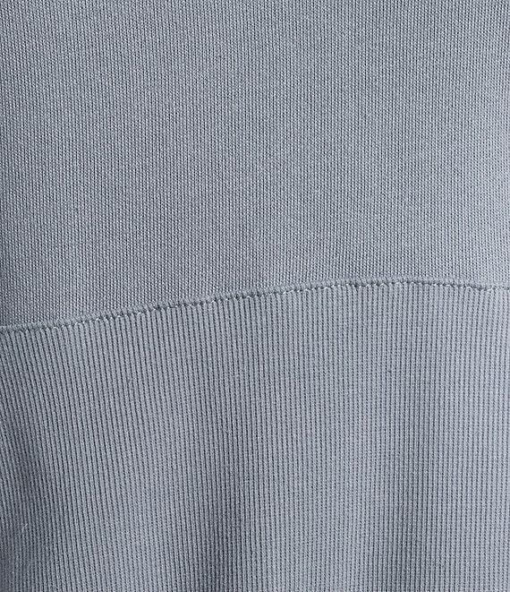 From Democracy, this top features: Mixed-media knit fabrication Mock neckline Long sleeves Embroidered floral at sleeves Front kangaroo pocket Bubble hem Pullover construction Cotton/polyester Hand wash Imported.