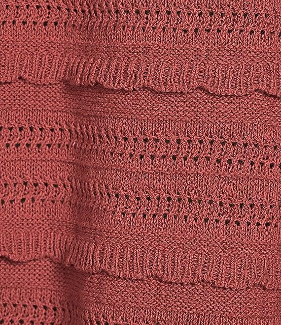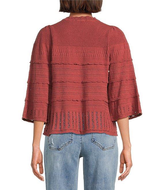 From Democracy, this sweater features: Mix stitch knit fabrication Round neckline 3/4 sleeves Scallop edge at neckline Pullover construction Cotton Machine wash Imported.