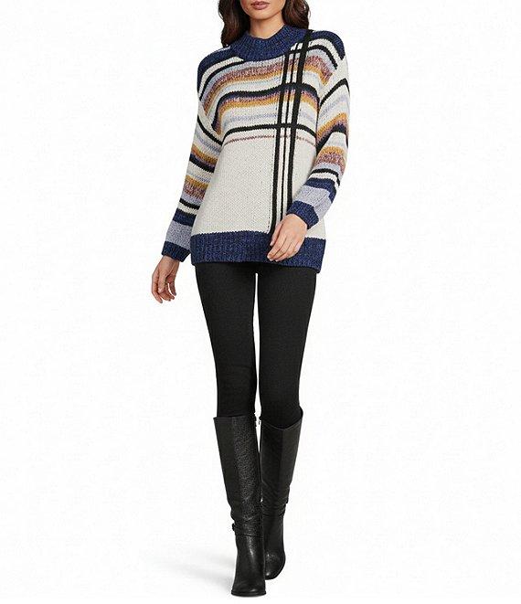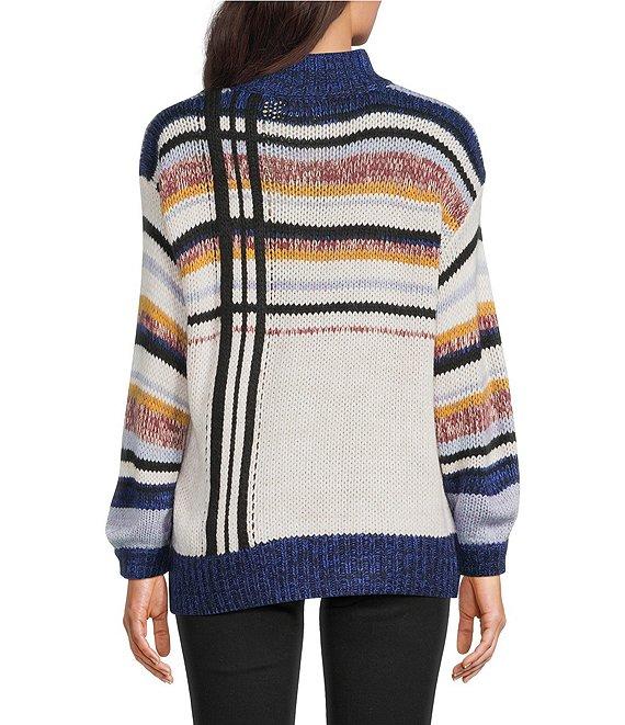 Democracy Mock Neck Long Sleeve Placement Striped Sweater