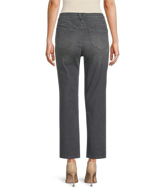 From Democracy, these pants feature: High rise Straight leg Belt loops 5-pocket styling Front faux lip seam Ankle length Straight hem Button and zip fly closure Approx. 28" inseam, 14.5" leg opening, 10" rise Cotton/polyester/rayon/spandex Machine washable Imported.