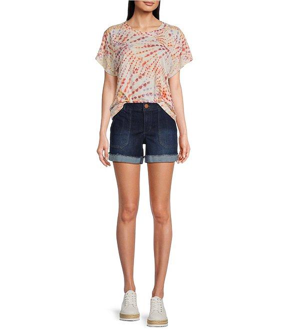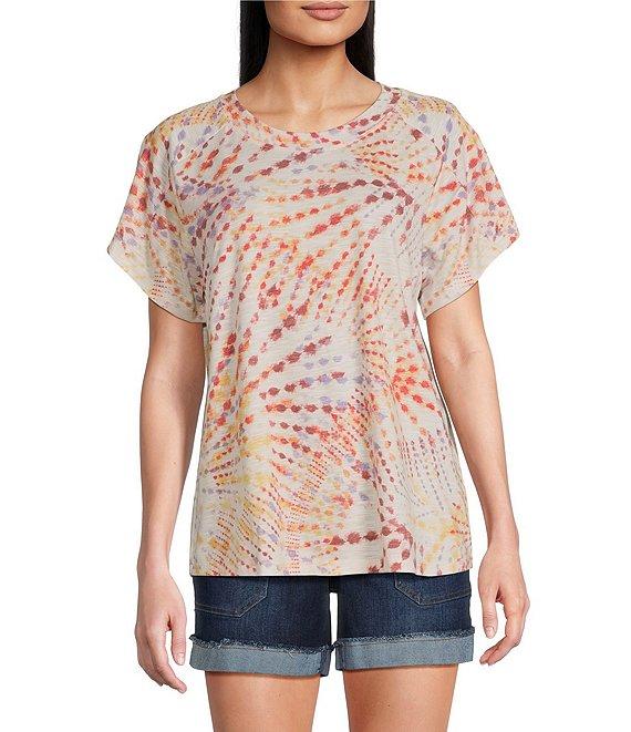 Democracy Petite Size Tie-Dye Knit Crew Neck Short Sleeve Boyfriend Tee Shirt