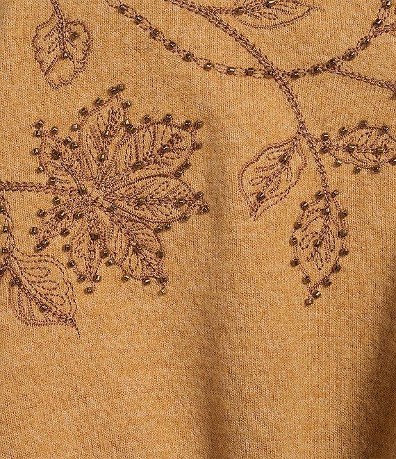 From Democracy Plus, this top features: Knit fabrication V-neckline Long sleeves Relaxed fit Beaded floral embroidery motif Knot hem Pullover construction Self: polyester/rayon/spandex; contrast: polyester/rayon/spandex Machine wash Imported.