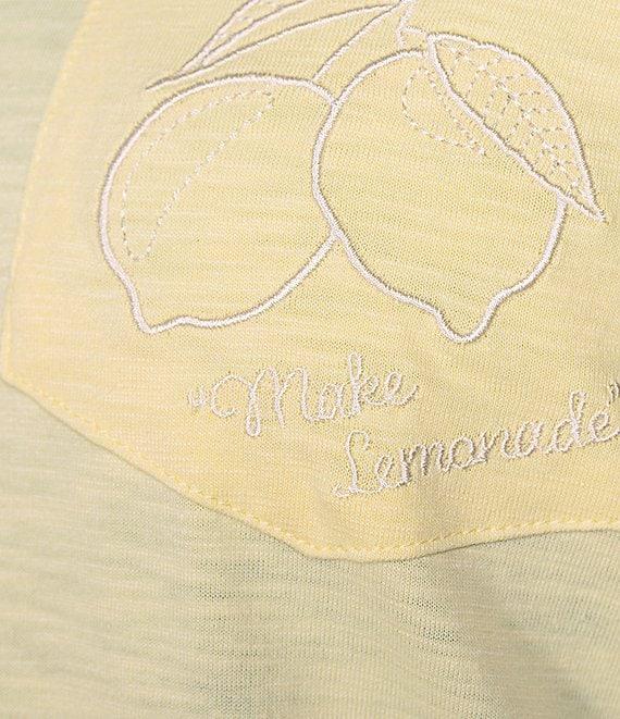 From Democracy Plus, this tee features: Knit fabrication Embroidered scoop neckline Short sleeves Embroidered "Make Lemonade" on pocket Pullover construction Polyester/cotton/spandex Cotton/modal Machine wash/line dry Imported.