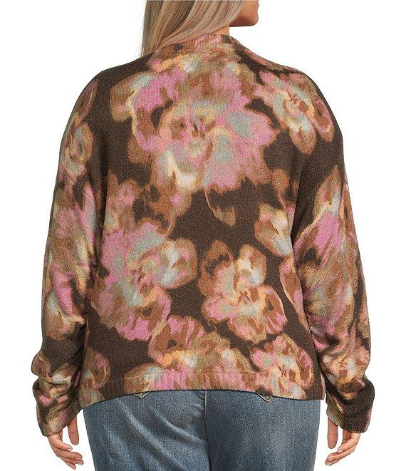 Democracy Plus Size Knit Floral Mock Neck Long Sleeve Sweater