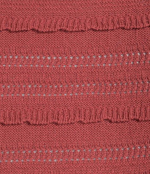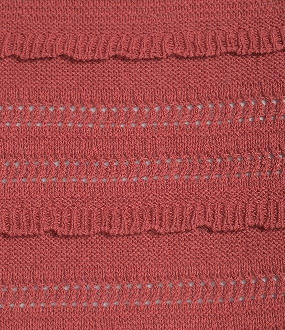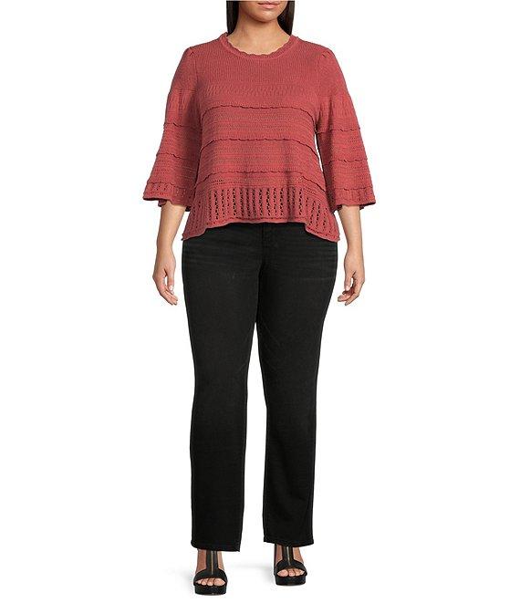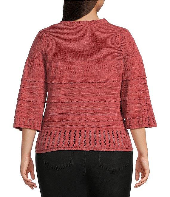 Democracy Plus Size Mix Stitch Knit Scallop Round Neck 3/4 Sleeve Sweater