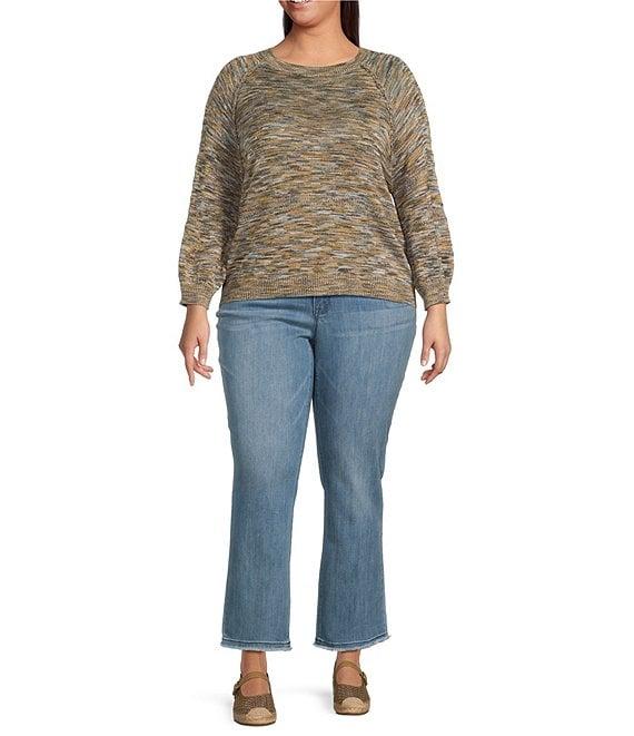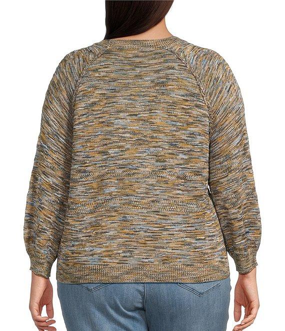 Democracy Plus Size Space-Dye Print Round Neck 3/4 Sleeve Sweater