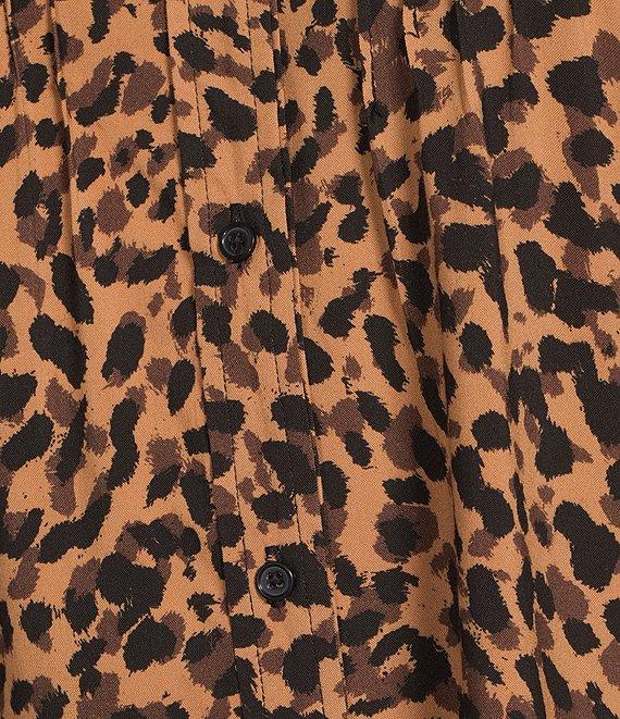Democracy Woven Animal Print Crochet Edge Spread Collar Elbow Lantern Sleeve Button-Front Shirt