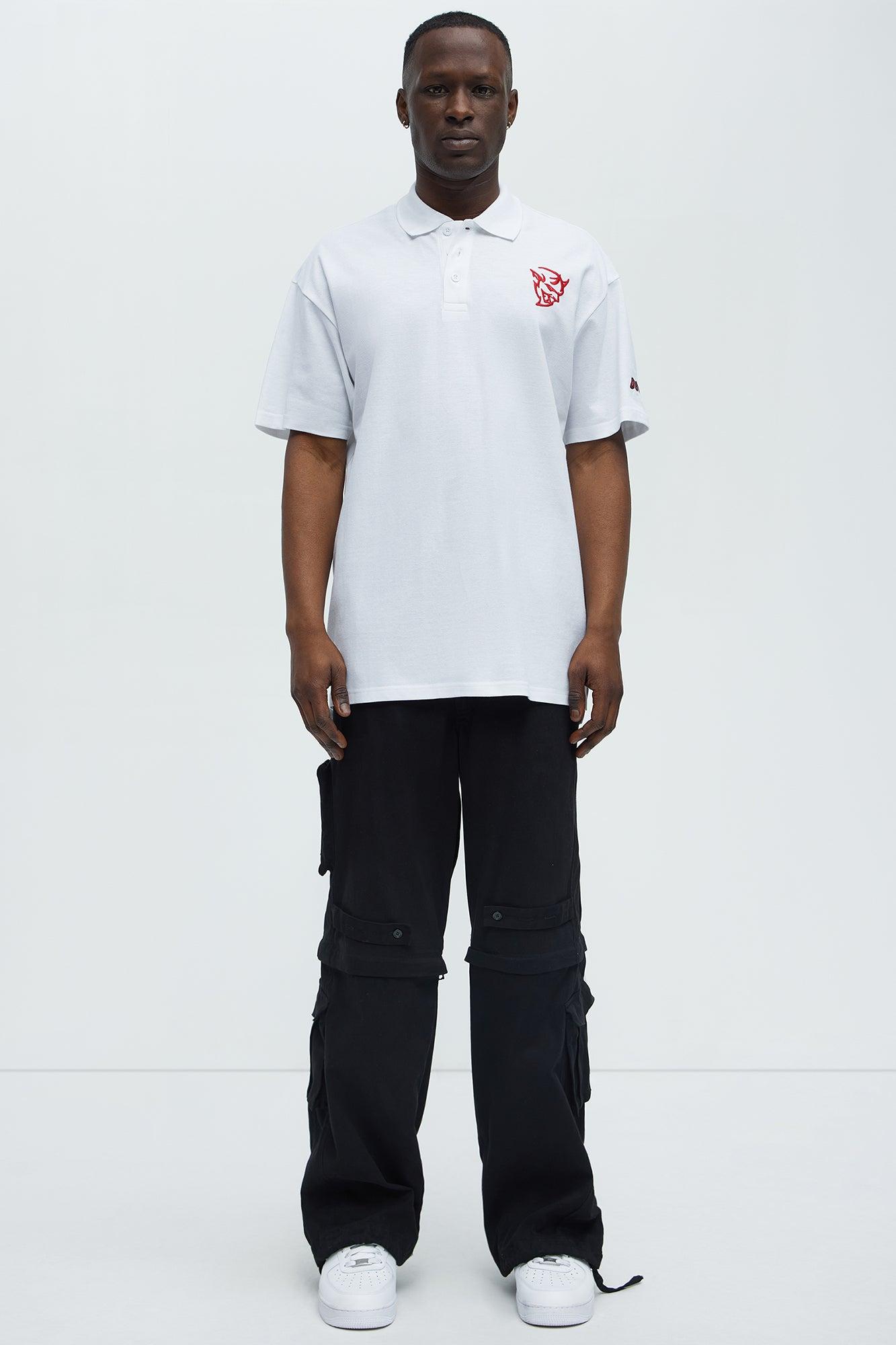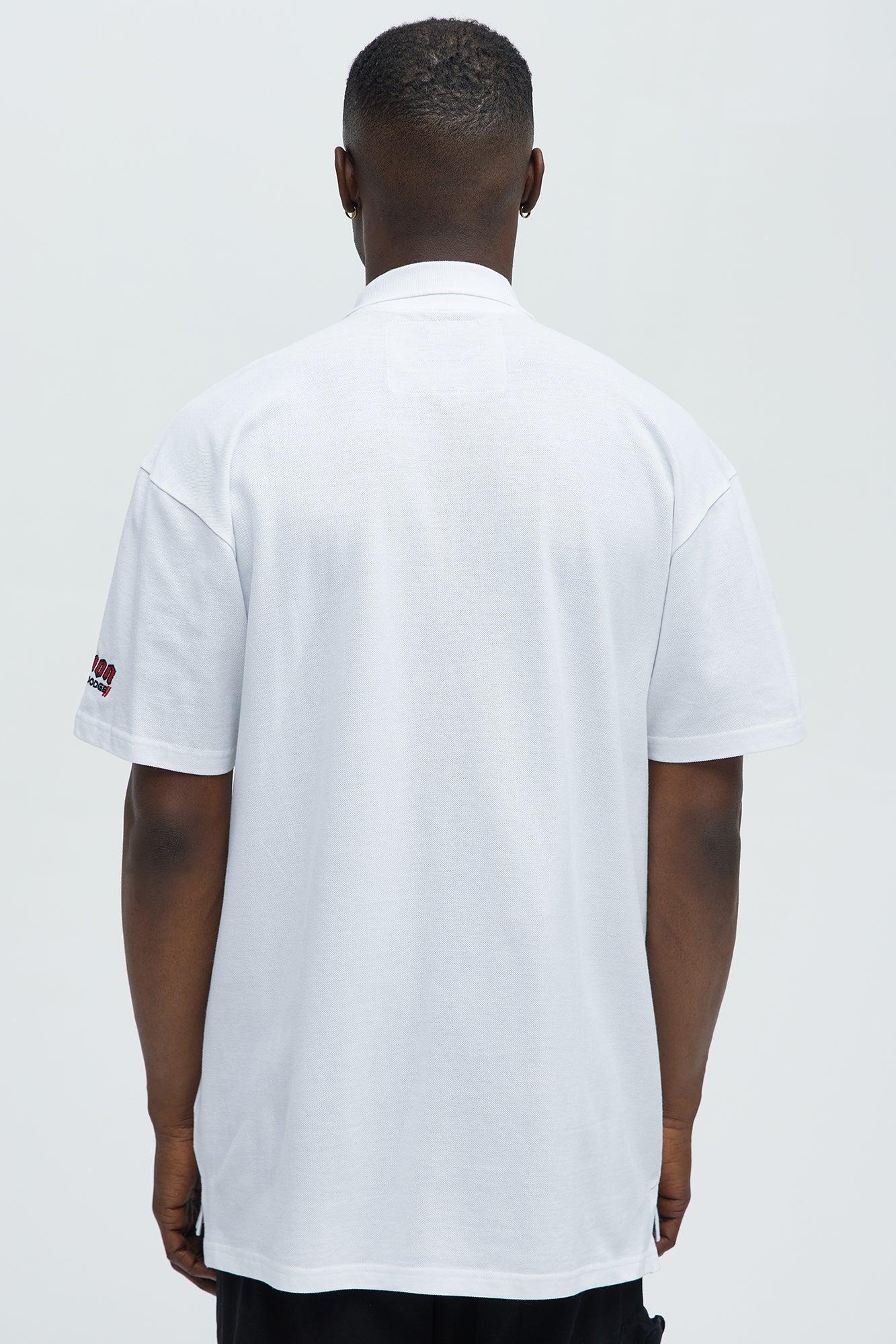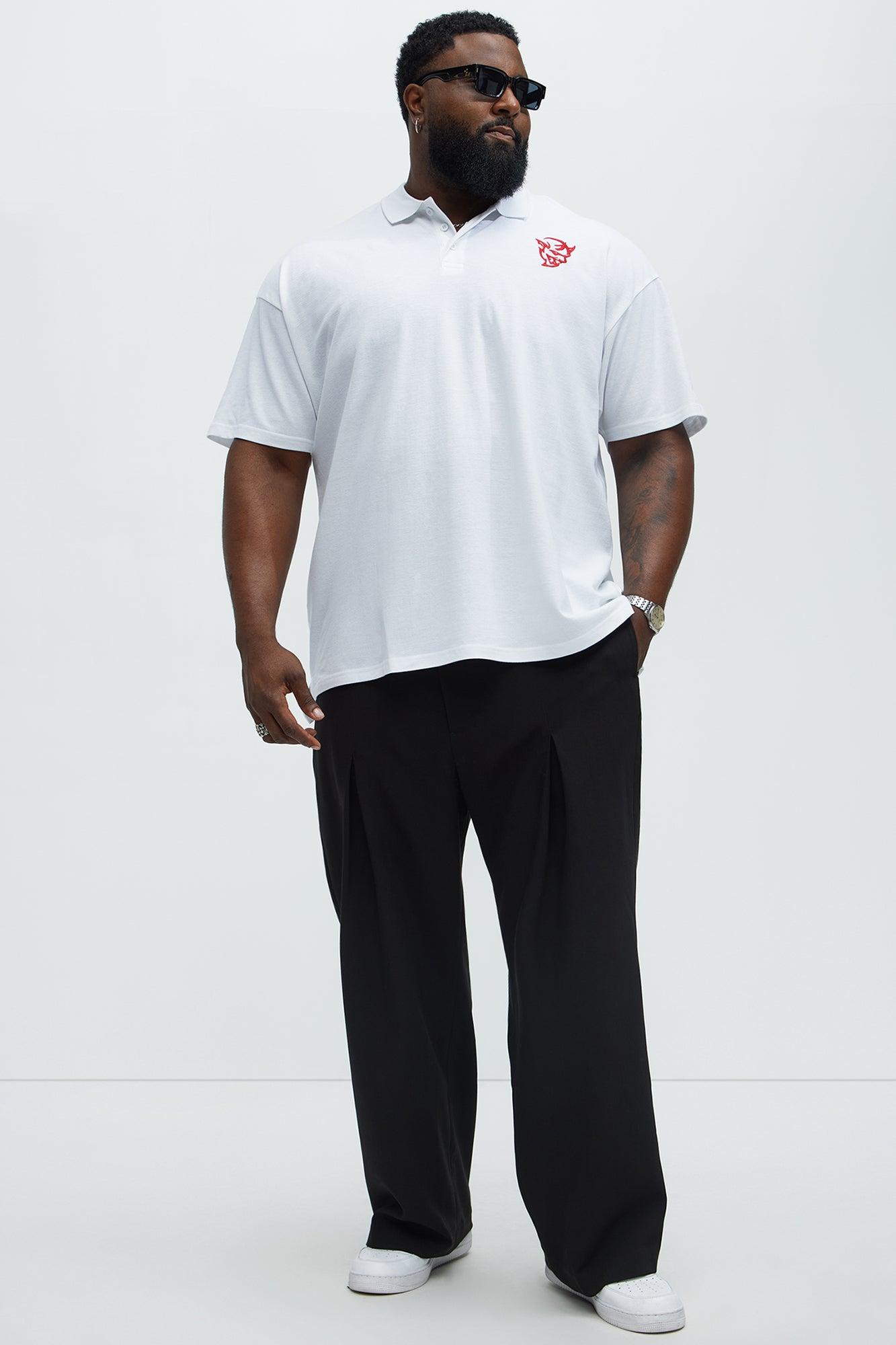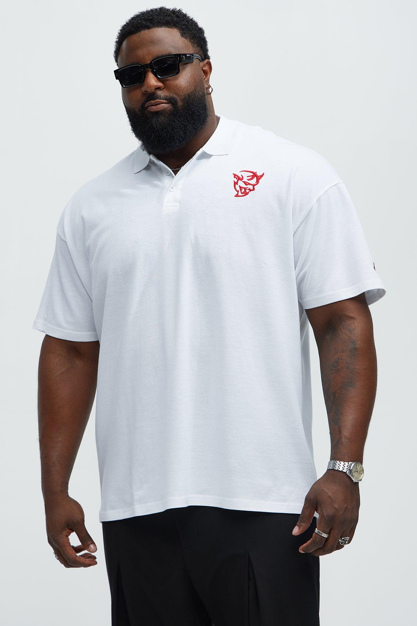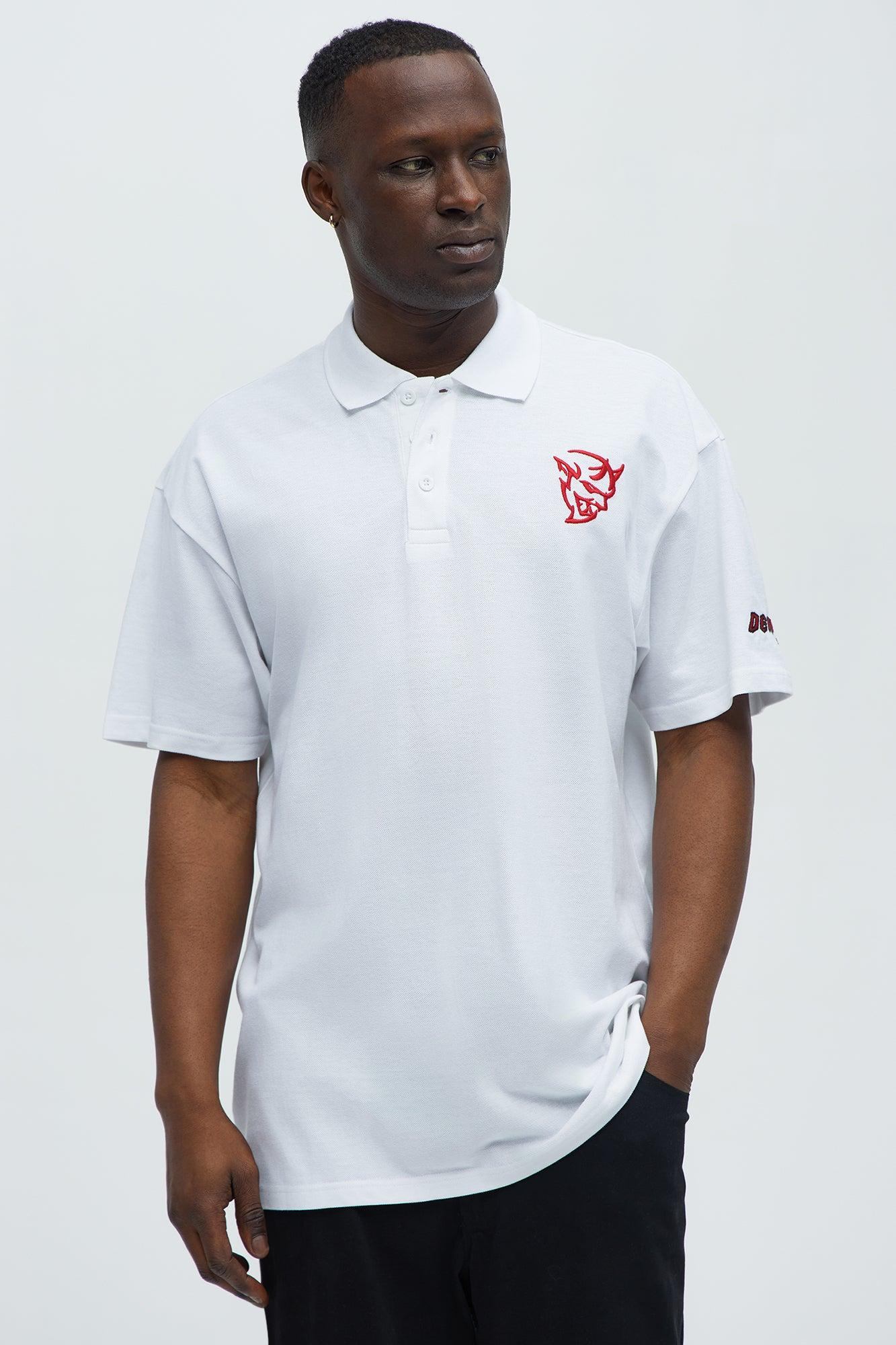 Demon Dodge Embroidered Short Sleeve Polo - White