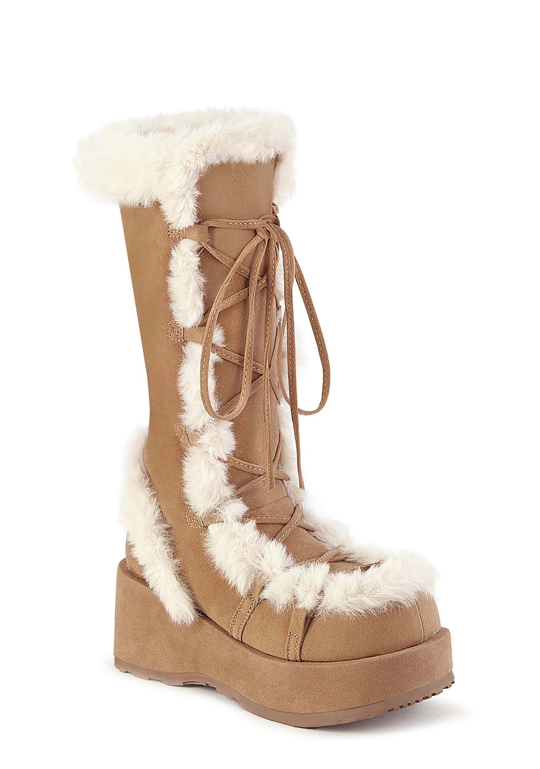 Demonia Cubby-311 Faux Fur Trim Knee High Boots - Brown