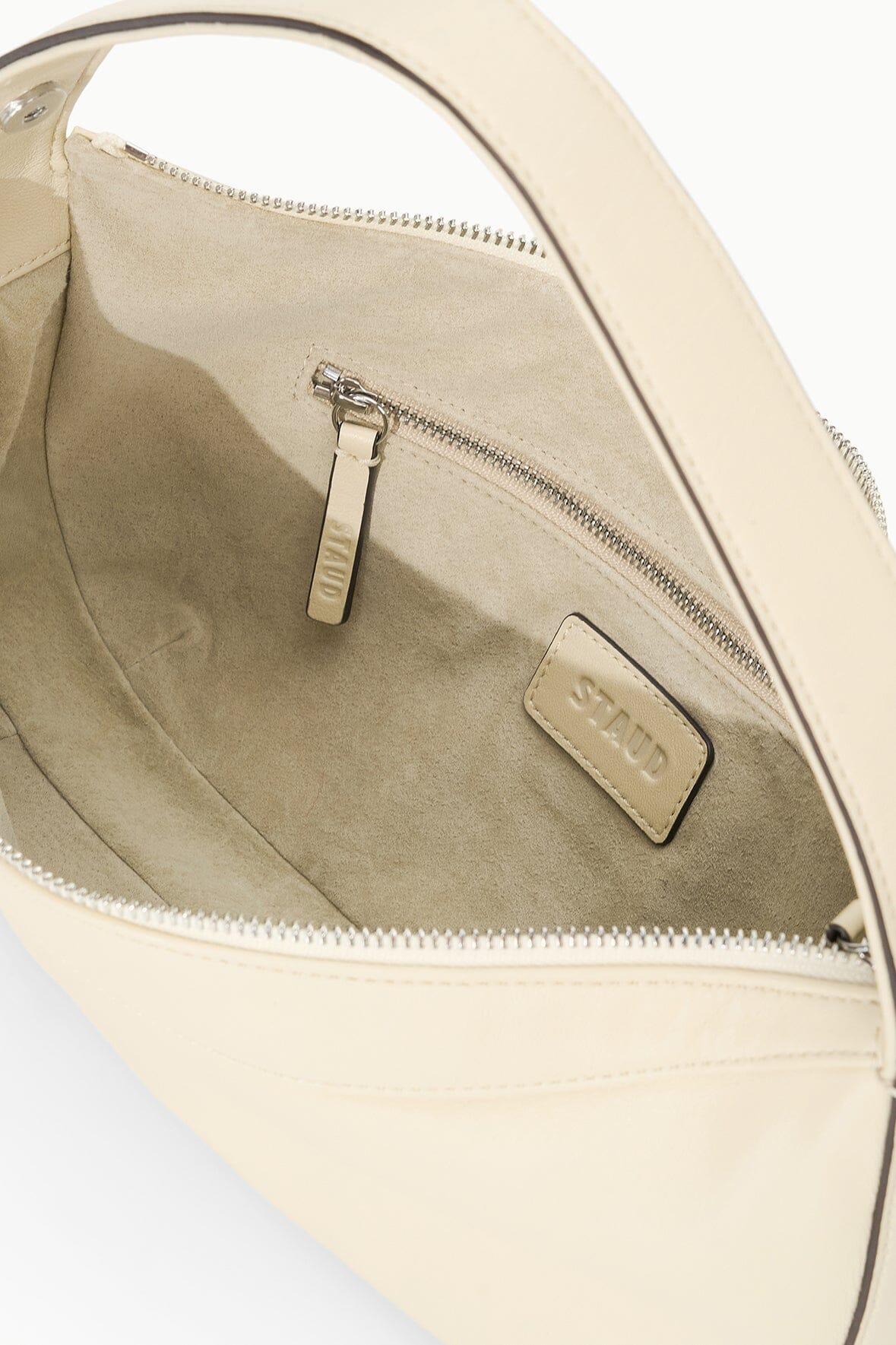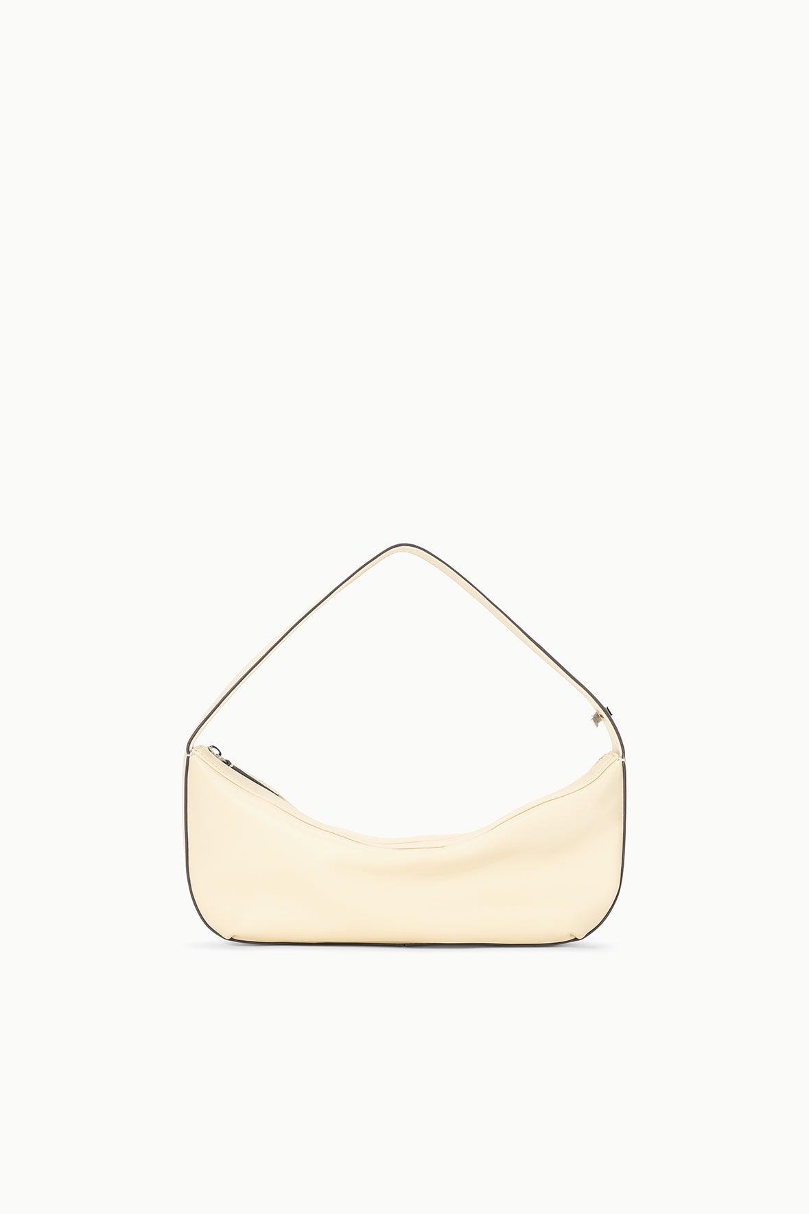 The Demy Shoulder Bag is a chic convertible bag that can be worn over the shoulder or hand held. It features signature hardware clasp on the strap to convert the shape to a handheld pouch. This style features a nappa leather body, a top zipper, and signature hardware.