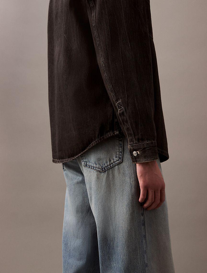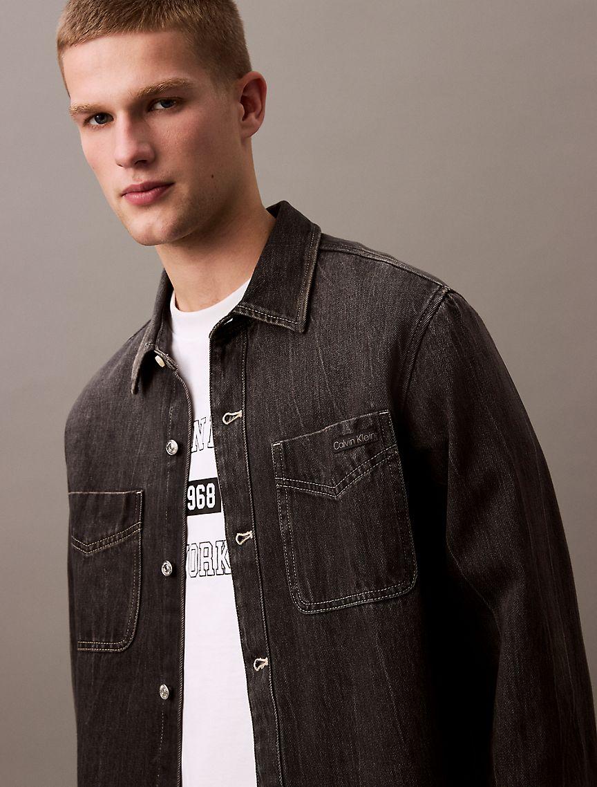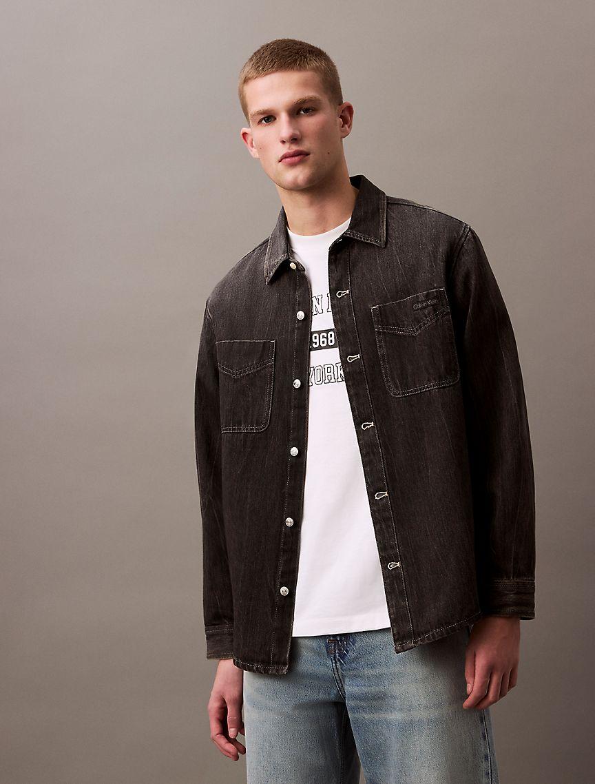 Designed with classic styling cues for a timeless look. This 90s inspired overshirt is crafted from rigid cotton denim for a sturdy feel that will break-in over time. Features dual chest patch pockets and a signature Calvin Klein logo label at the front.