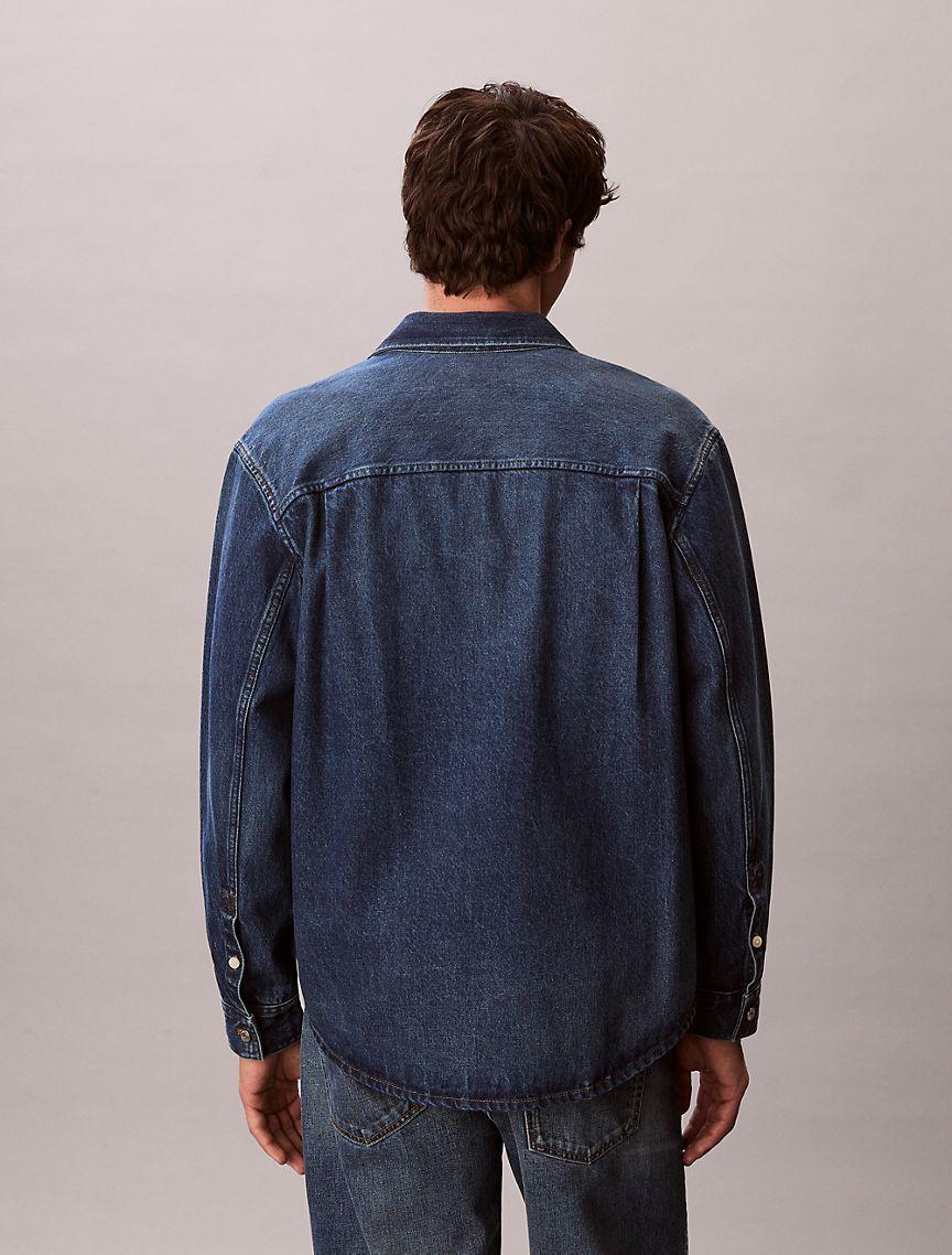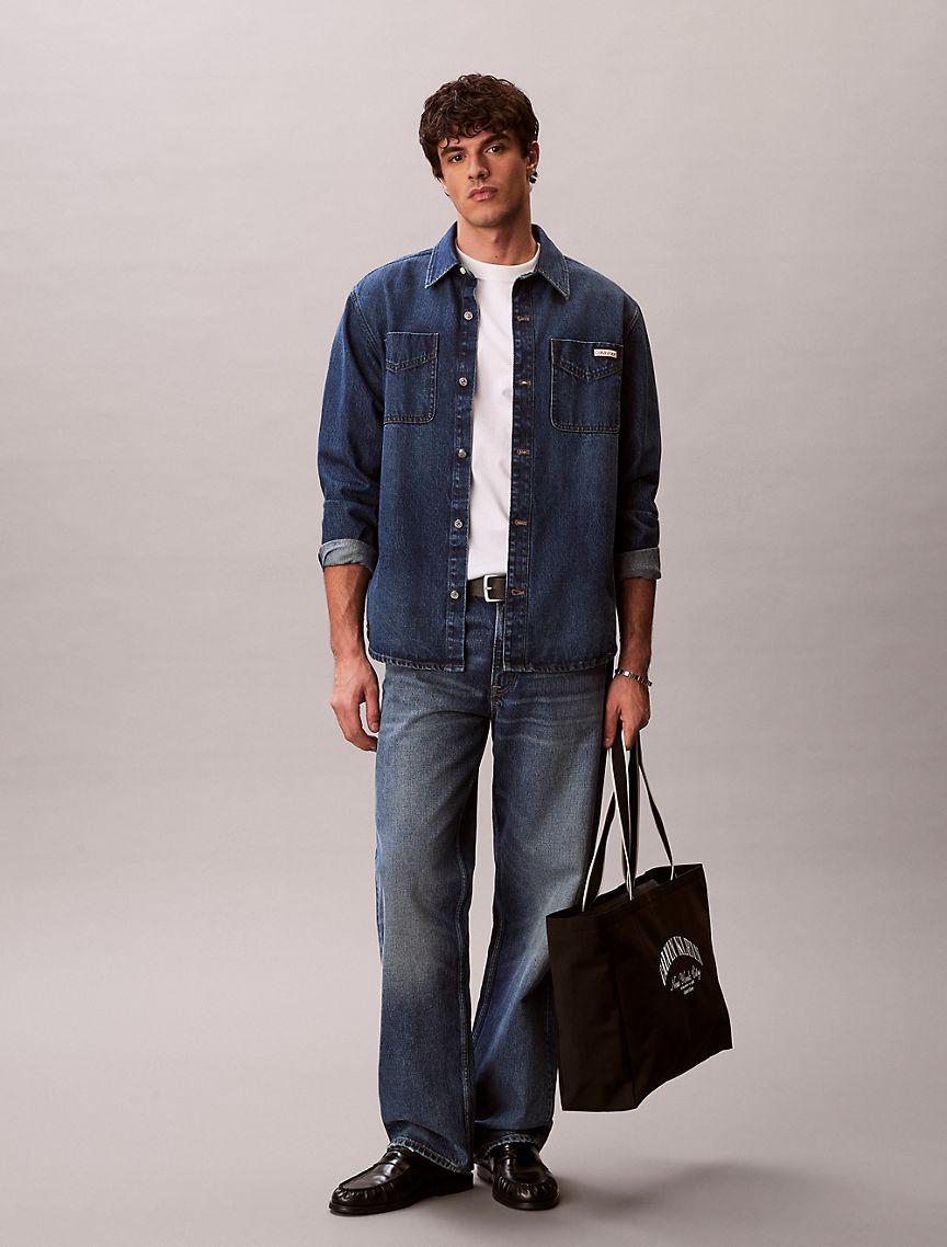 Designed with classic styling cues for a timeless look. This 90s-inspired overshirt is crafted from rigid cotton denim for a sturdy feel that will break-in over time. Features dual chest patch pockets and a signature Calvin Klein logo label at the front.