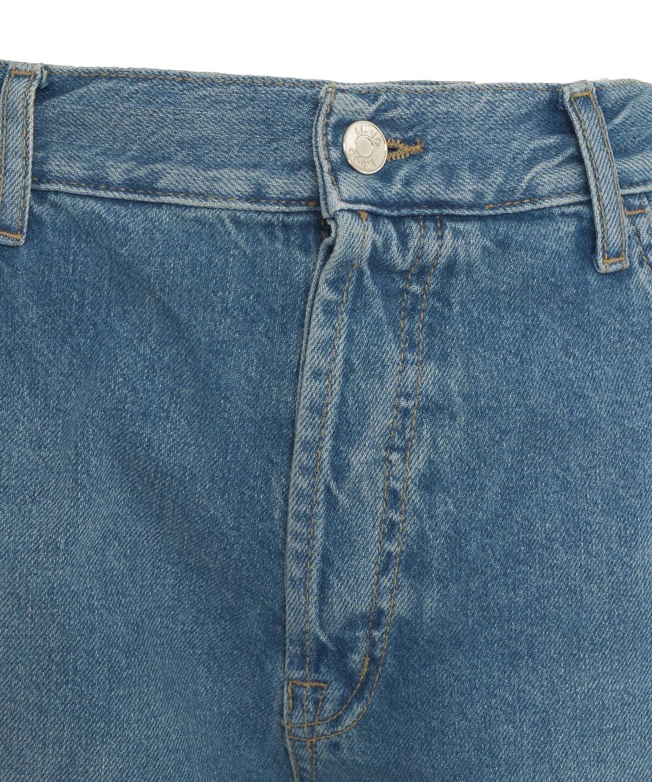 Belt loopsFive pocketsReleased hemButton closureWide legLogo patchWashed areasSilver coloured metallic detailsLogo pendant