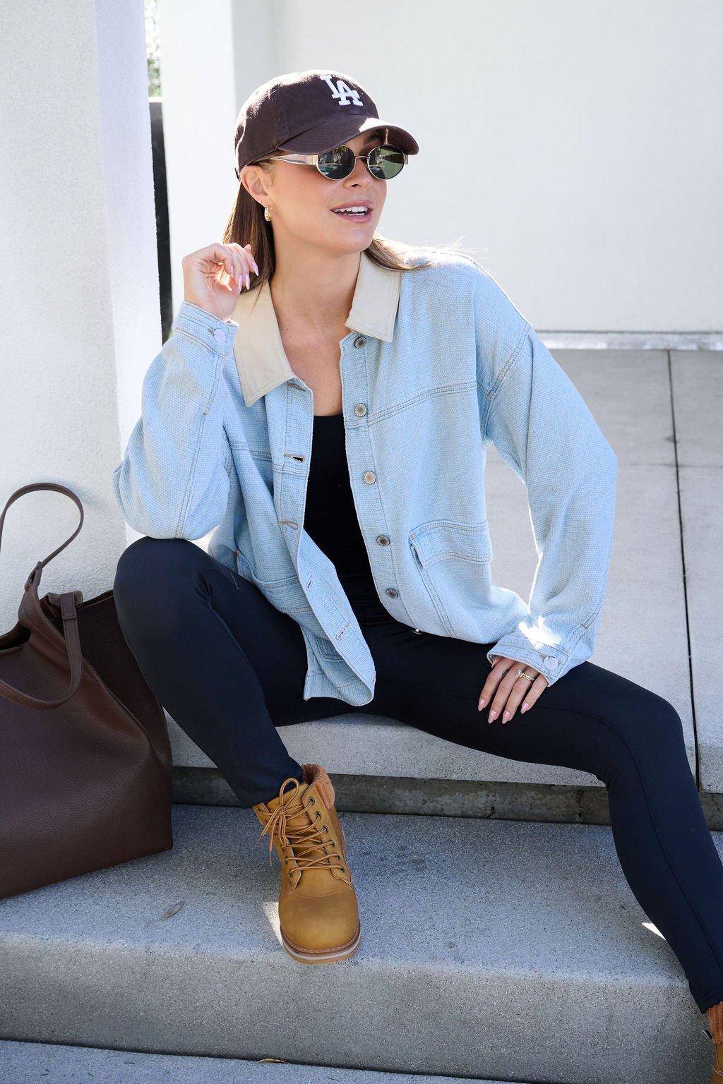 Elevate your everyday style with the Denim Buttoned Utility Jacket, crafted from 100% cotton for a durable yet comfortable feel. Featuring a collared V-neckline, button-down front, and buttoned cuffs for a classic utility-inspired look, this jacket is finished with front flap pockets for functionality and a chic contrast collar detail for added flair. Perfect for layering, it’s a versatile piece that blends timeless design with modern edge.