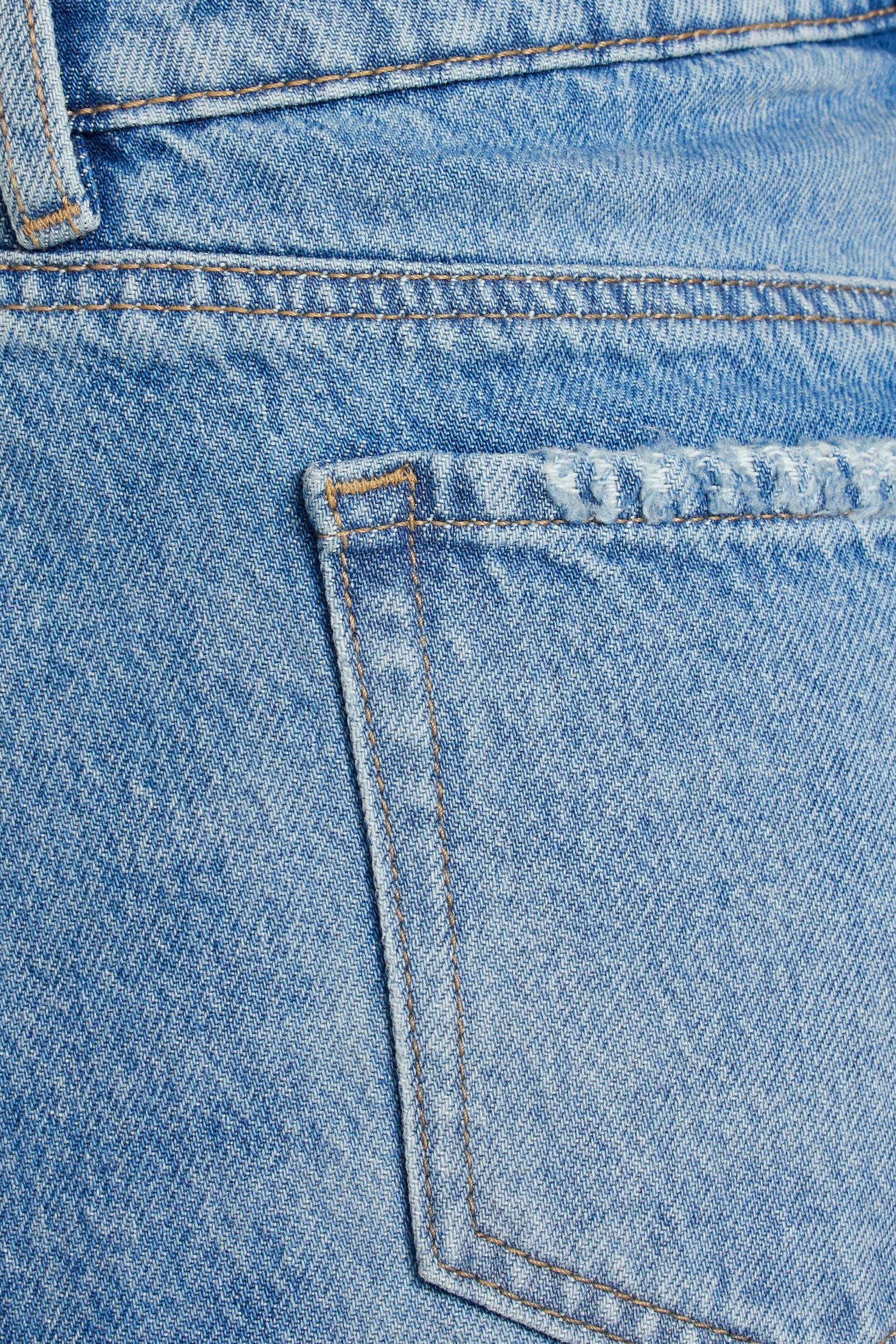 Festival shorts and a tank top ! Timeless it-girl serve. Features Five-pocket styling Zip-fly with button closure Raw hem Fading and distressing throughout Size & Fit Fit: Classic Rise: 11" Inseam: 2" Model is wearing size 3 Materials & Care Content: 75% cotton, 25% organic cotton Care: Wash cold, inside out Imported