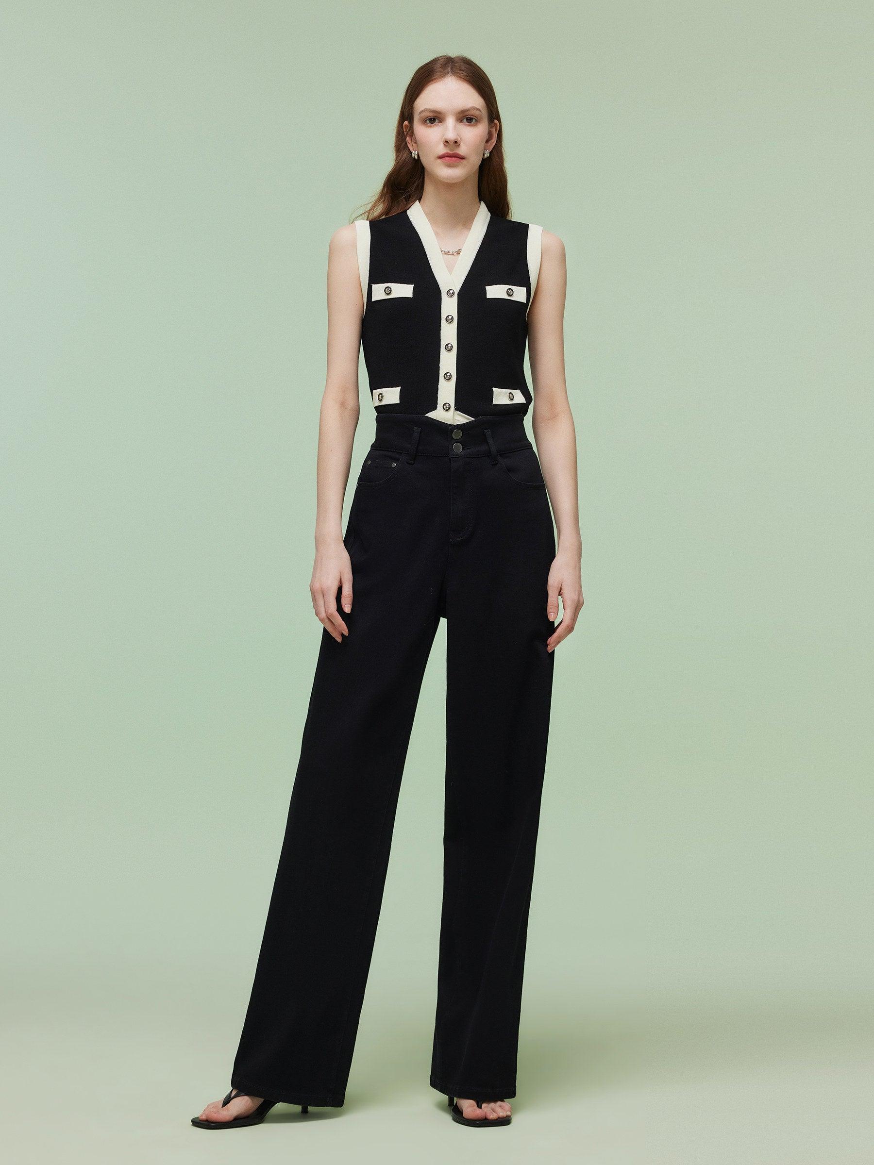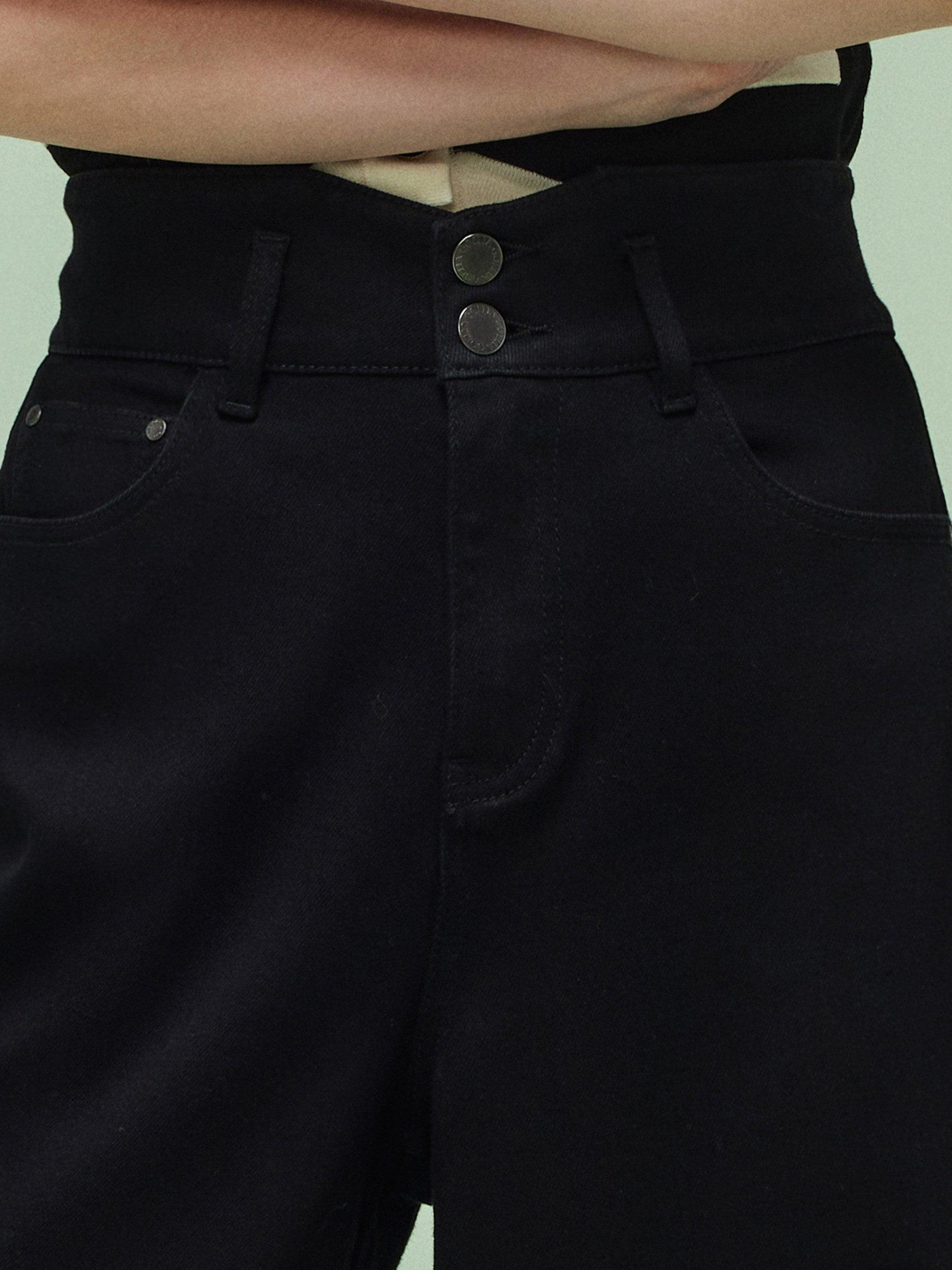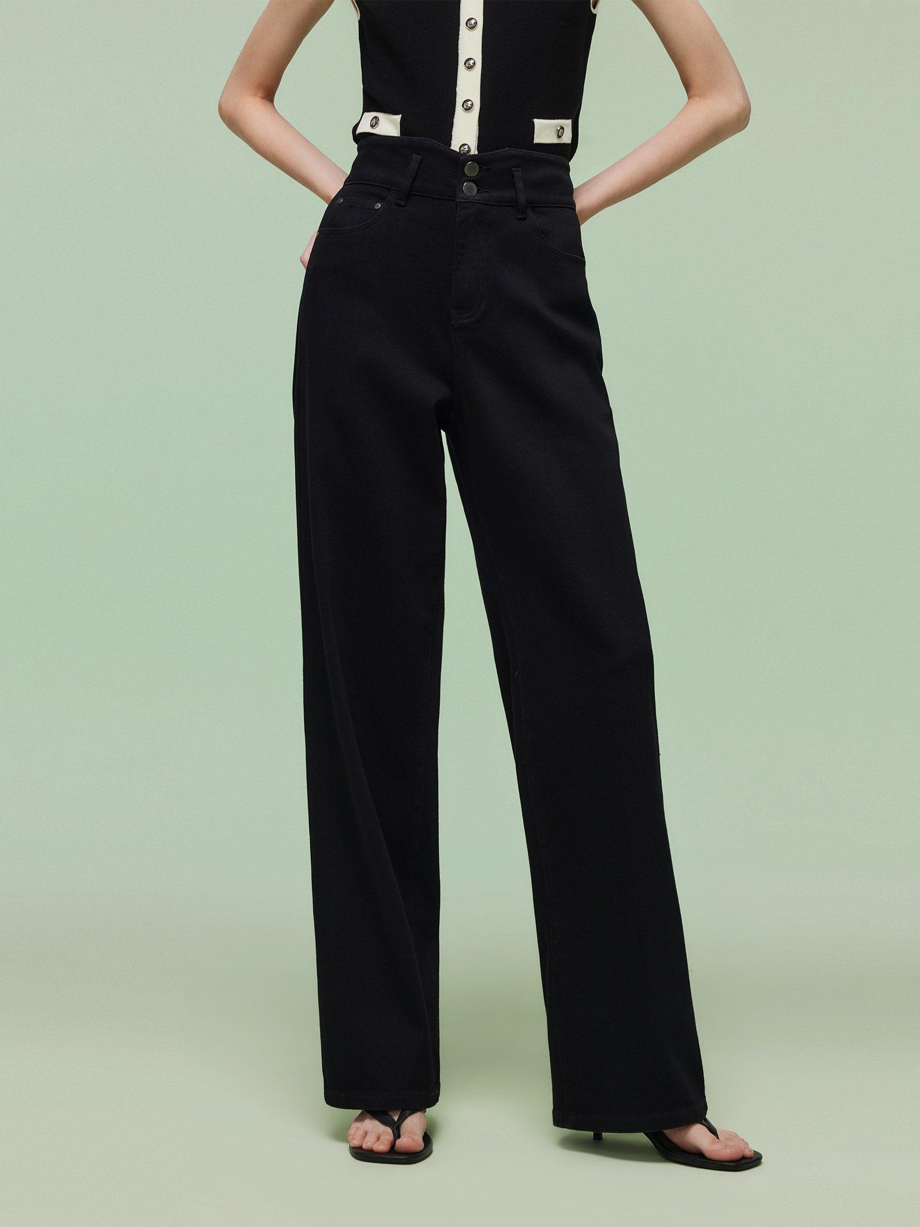 -Cotton blend denim -Straight leg -Loose fit These column jeans have been designed with laid-back time in mind. With a high waist, they offer a flattering fit that accentuates your silhouette. The unique pocket design and metallic buttons add a touch of edginess, while the cotton blend denim fabric ensures all-day comf