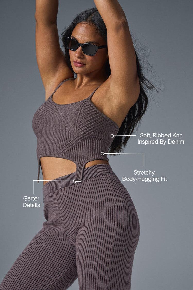 Crafted from soft, structured, ribbed-knit fabric inspired by the nuanced texture of denim, this tank features a cropped fit, dainty adjustable shoulder straps, and a garter strap detail for a touch of allure. Trust us, you’re going to want one in every shade.