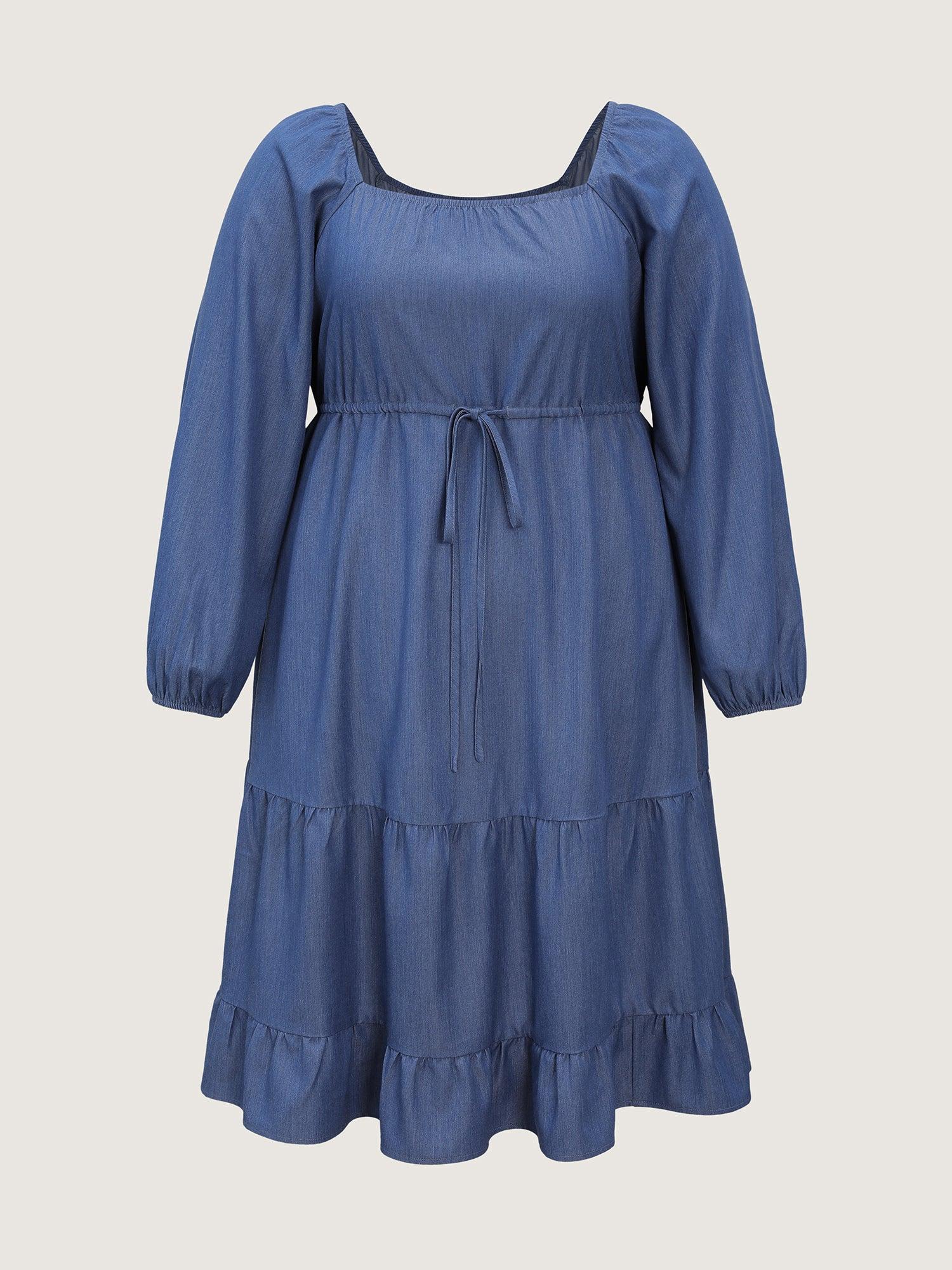 Shop Denim-Like Cinched-Waist Pockets Midi Dress now and redefine your style with confidence at BloomChic. Tailored for mid and plus-size women. This trendy Dress, sizes 10-30. You can never go wrong with BloomChic Dresses. Color:Denimblue;Style:Leisure;Neckline:Square Neck;Sleeve Type:Lantern Sleeve;Prints:Non;Pocket:Side seam pocket;Belt:Belt;Closure Type:Non