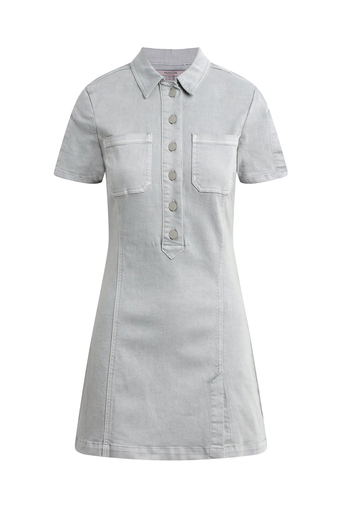 Description Our Denim Mini Dress has a casual fit with a collar and button placket. It also has a slit at the front and slits on the sleeve. This style is crafted from premium comfort stretch denim in a distressed grey overdyed wash, High Rise. Product Details Body Length: 34", Chest: 34", Sleeve Length: 7.5"Model Height 5'9"Model wearing size 25Measurements based on size 27 Fit & Care Content: 99% Cotton, 1% ElastaneMachine wash cold with like colorsDo not bleachTumble dry low or hang to dry