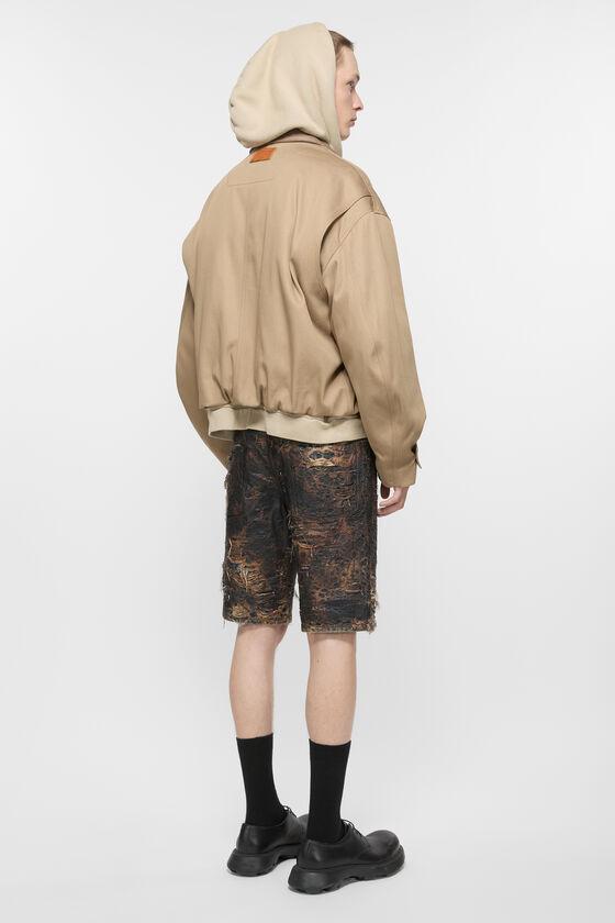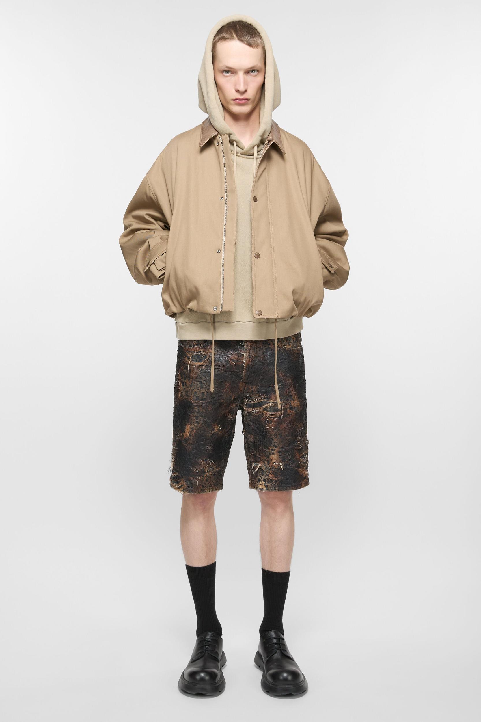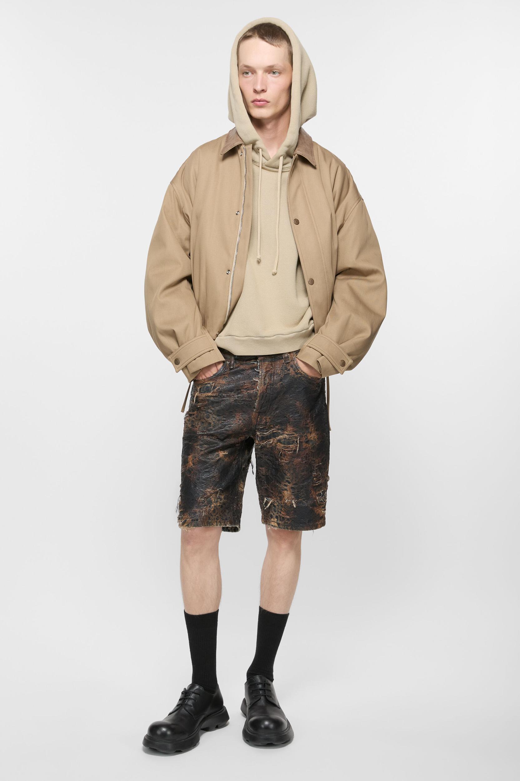 Shorts are crafted from non-stretch denim, adorned with a fil de coupe distressed Acne Studios jacquard monogram and a coated treatment. Cut to a loose fit with a low waist and below knee length. FN-MN-SHOR000260