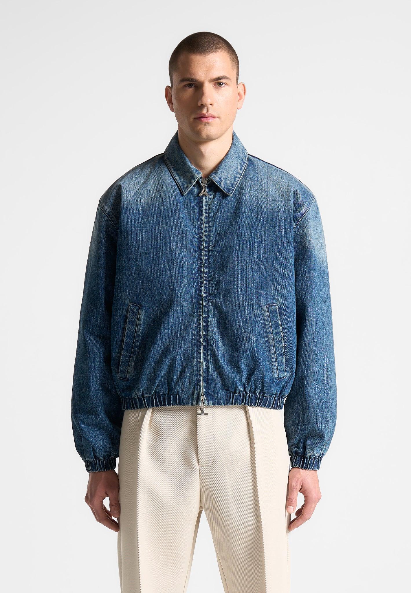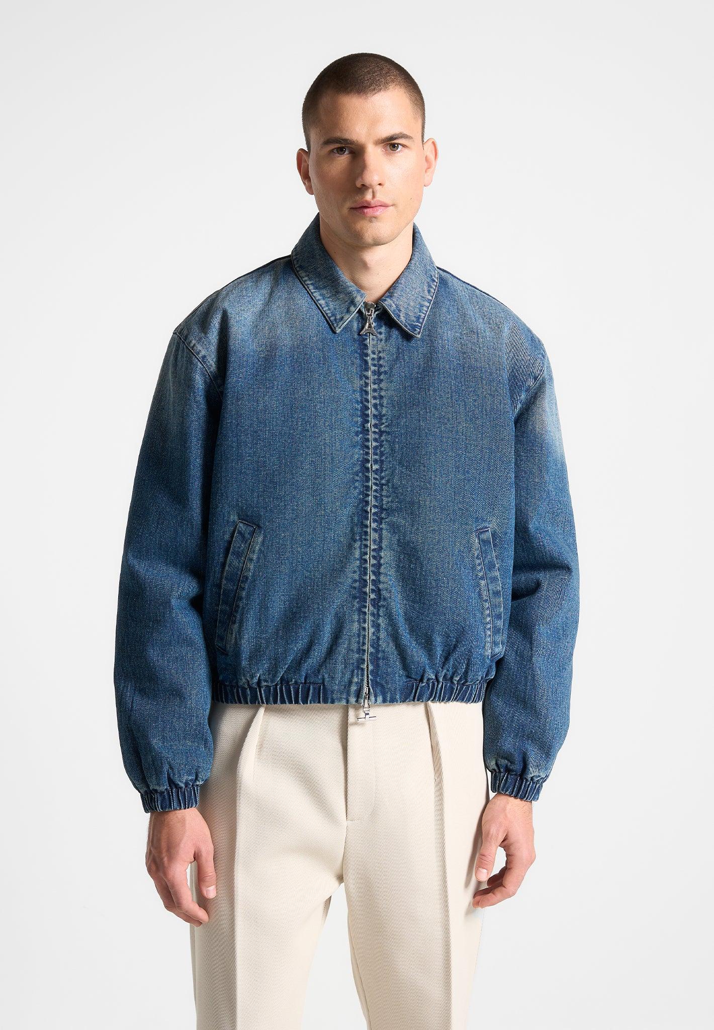 Introducing our new Denim Padded Cropped Bomber Jacket - the perfect addition to your wardrobe. With a relaxed fit and washed denim fabric, this jacket seamlessly transitions from day to night. Stay stylish and smart with this versatile piece. Fabric: Always check the care label for wash instructions. Model is 6'0", 40" Chest, 30" Waist and Wears Size Medium Based On Size M - Front Length cm/in, Chest cm/in, Sleeve Length cm/in Stretch Factor - /3