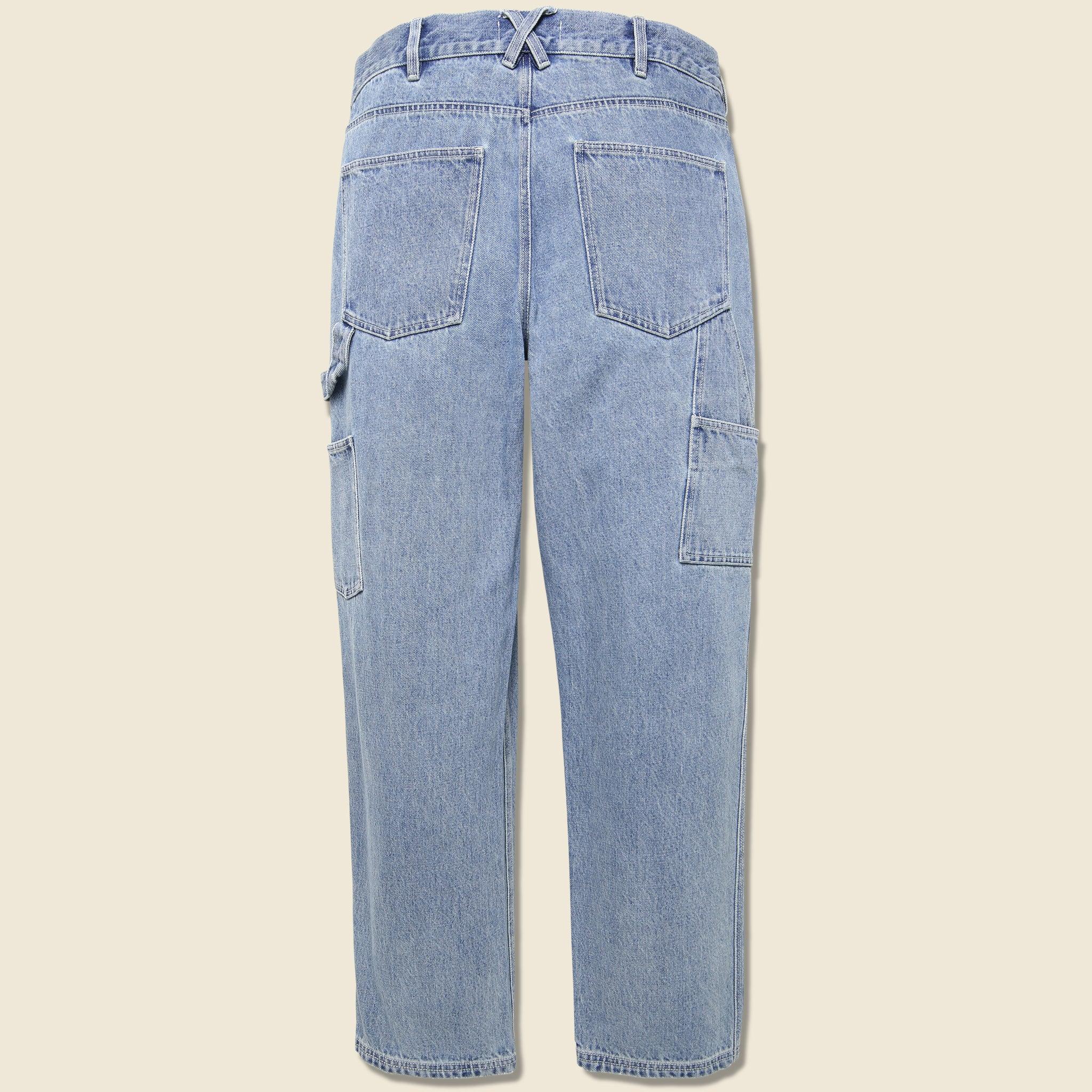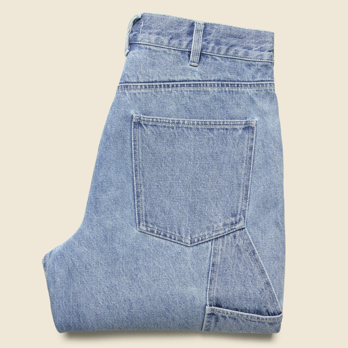 These Denim Painter Pants from Alex Mill are cut from 100% cotton, Japanese denim and have been finished with classic workwear details like utility pockets, a comfortable, higher rise, and a single hammer loop. They have a straight, slightly tapered leg and have undergone a special garment-dyed washing process for a li