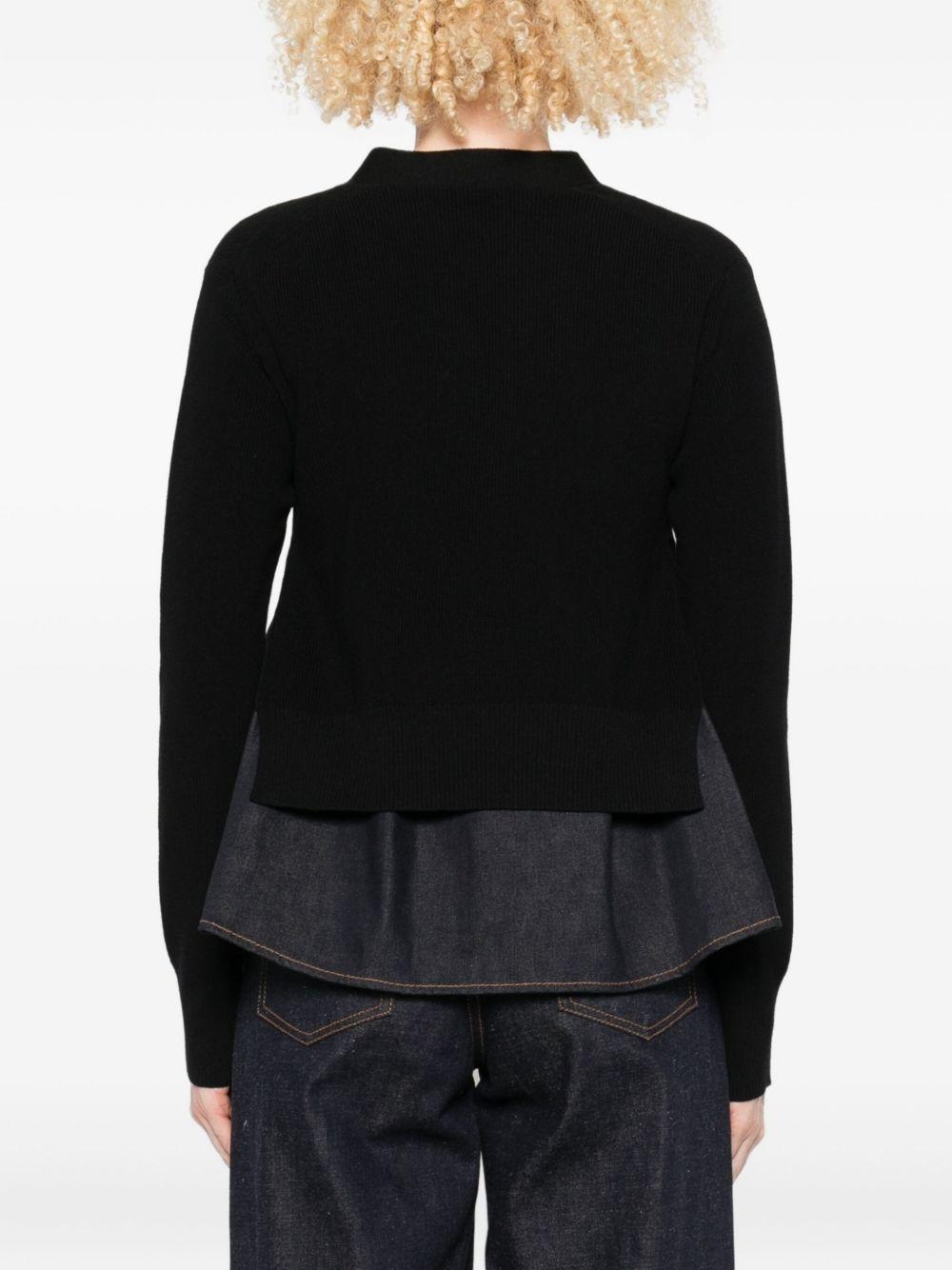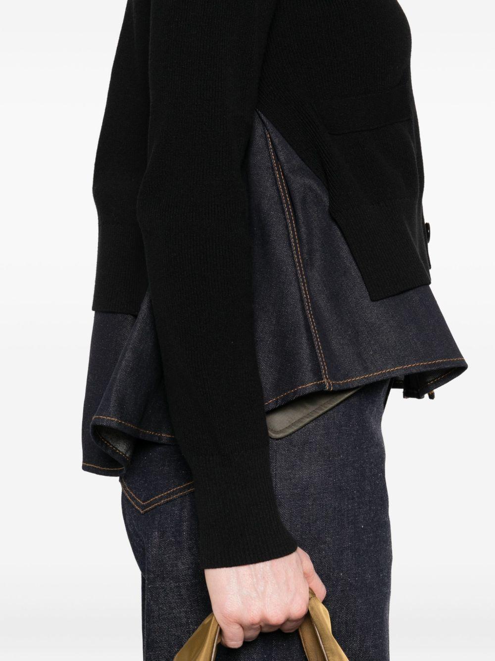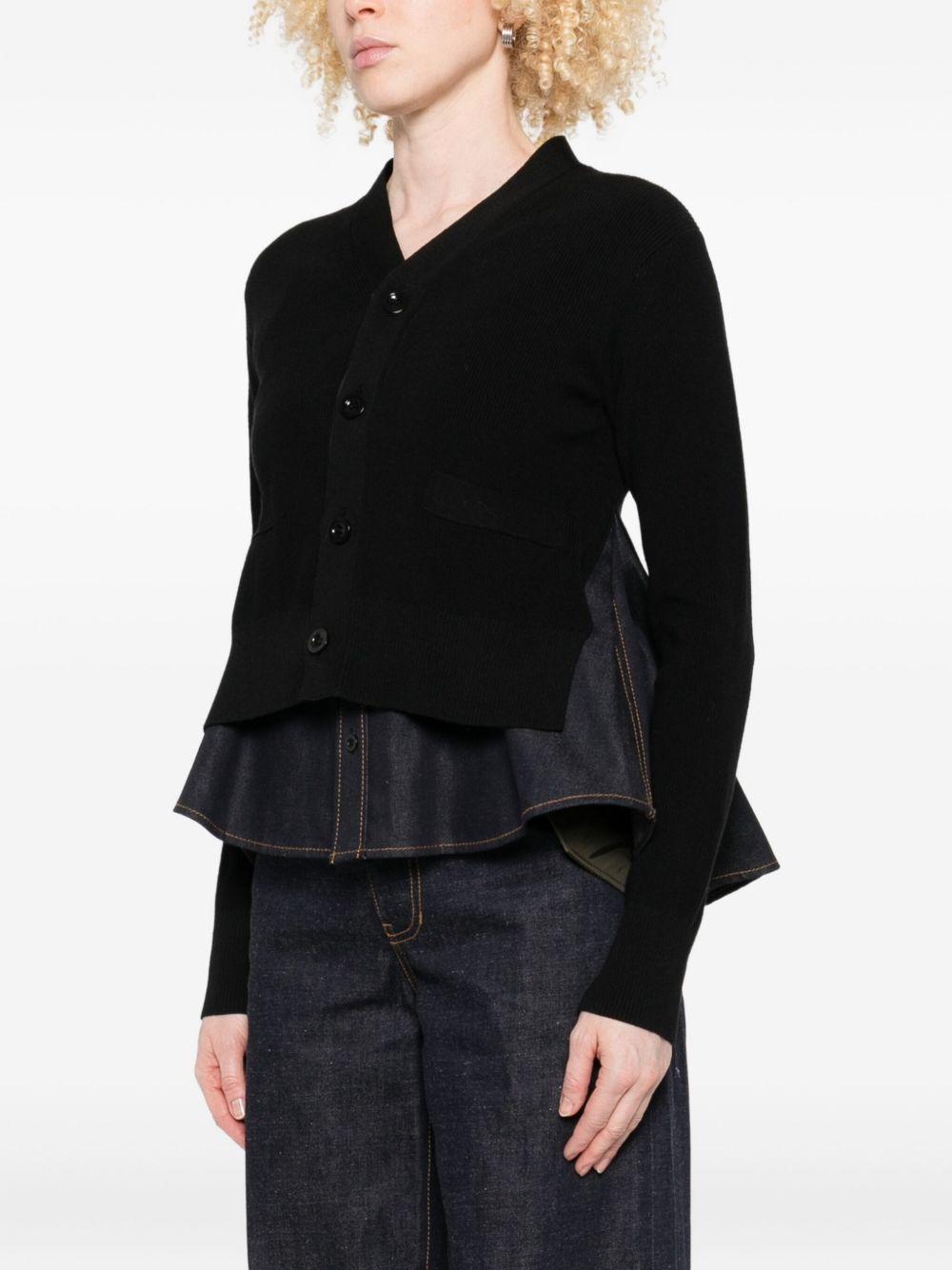 denim-panel ribbed cardigan