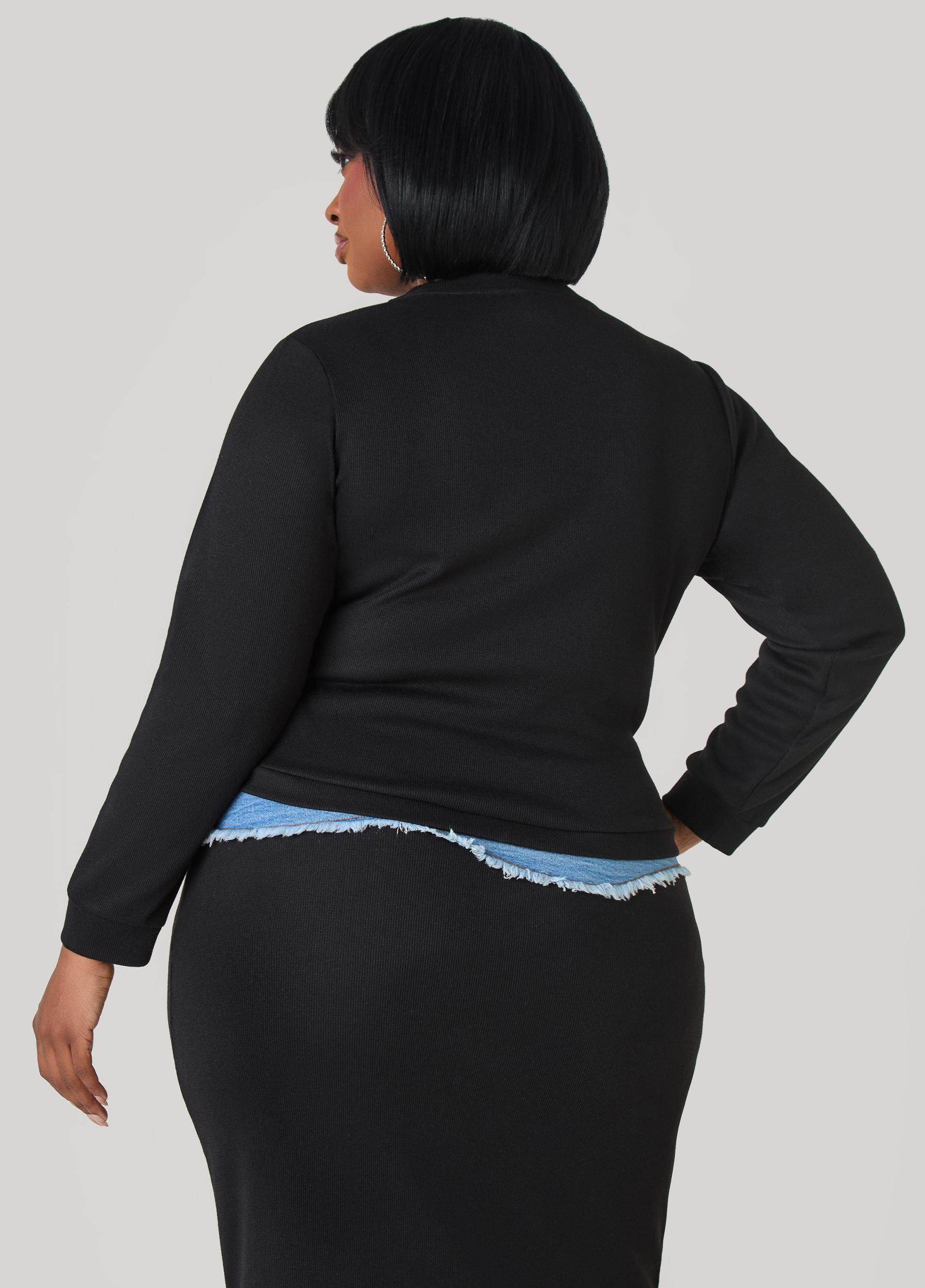 This ribbed crop top mixes soft jersey with a denim patch pocket for a hit of contrast. Pair it with the matching skirt for a two-piece look that lands strong.