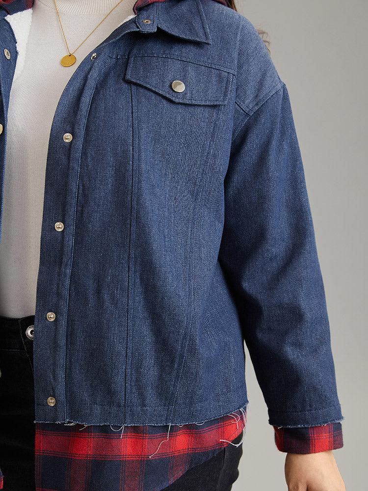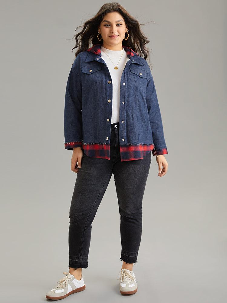 Shop Denim Plaid Patchwork Contrast Hooded Jacket now and redefine your style with confidence at BloomChic. Tailored for mid and plus-size women. This trendy Outerwear Women, sizes 10-30. Color:Navy;Style:Casual;Pattern Type:Plaid;Details:Pocket, Button, Patchwork, Contrast;Pocket:It is perfectly sized to carry a phone.;Belt:No-belt;Closure Type:Button;Lining:No-lining