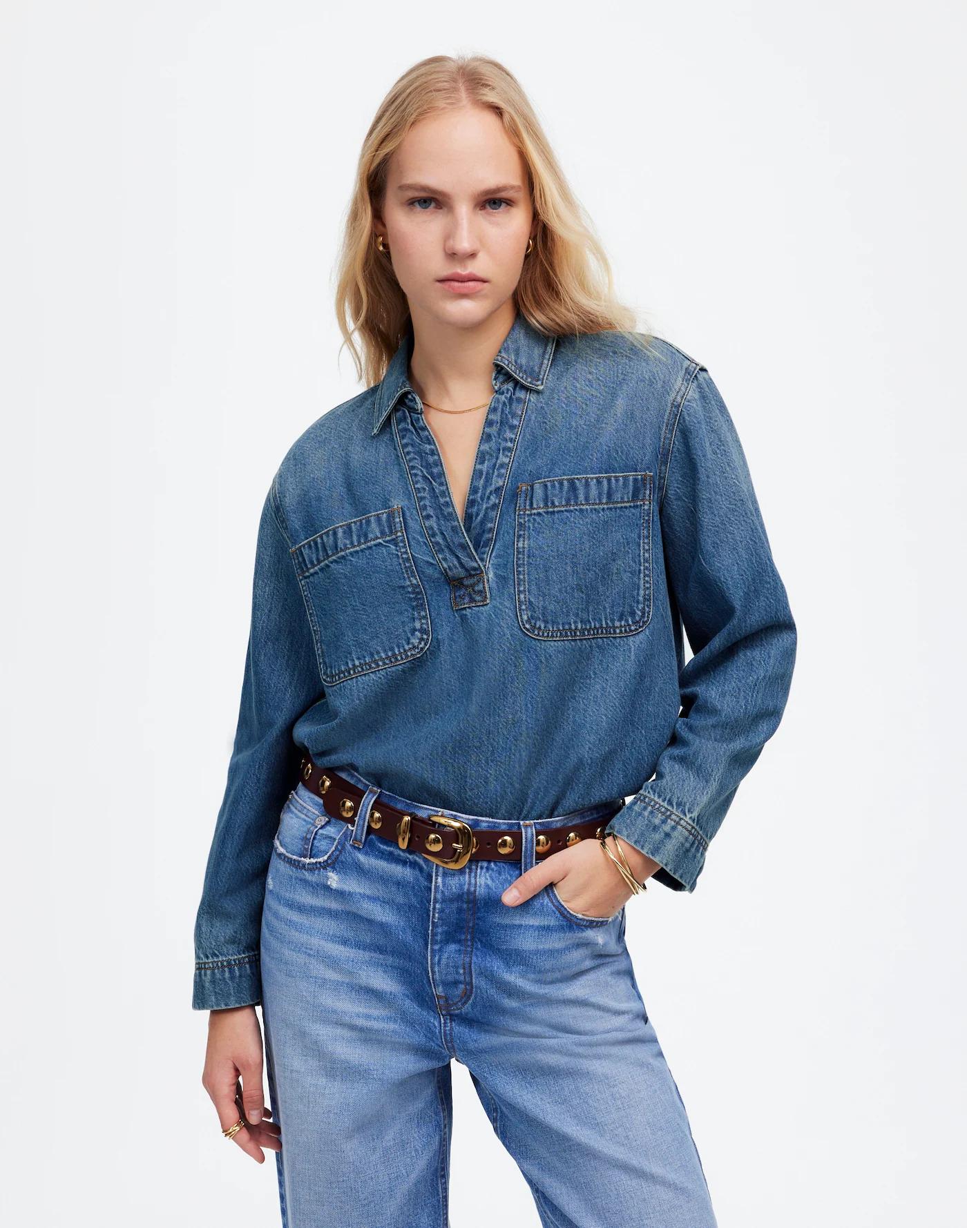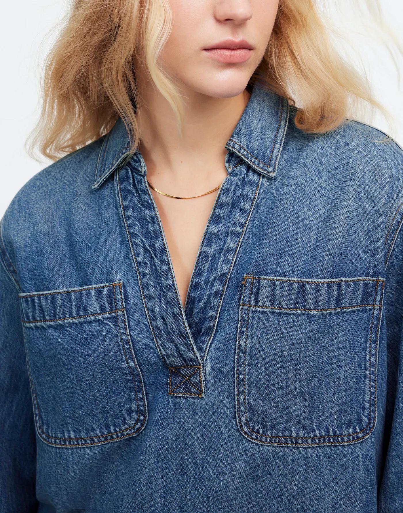Denim Popover Tunic Shirt in Ector Wash