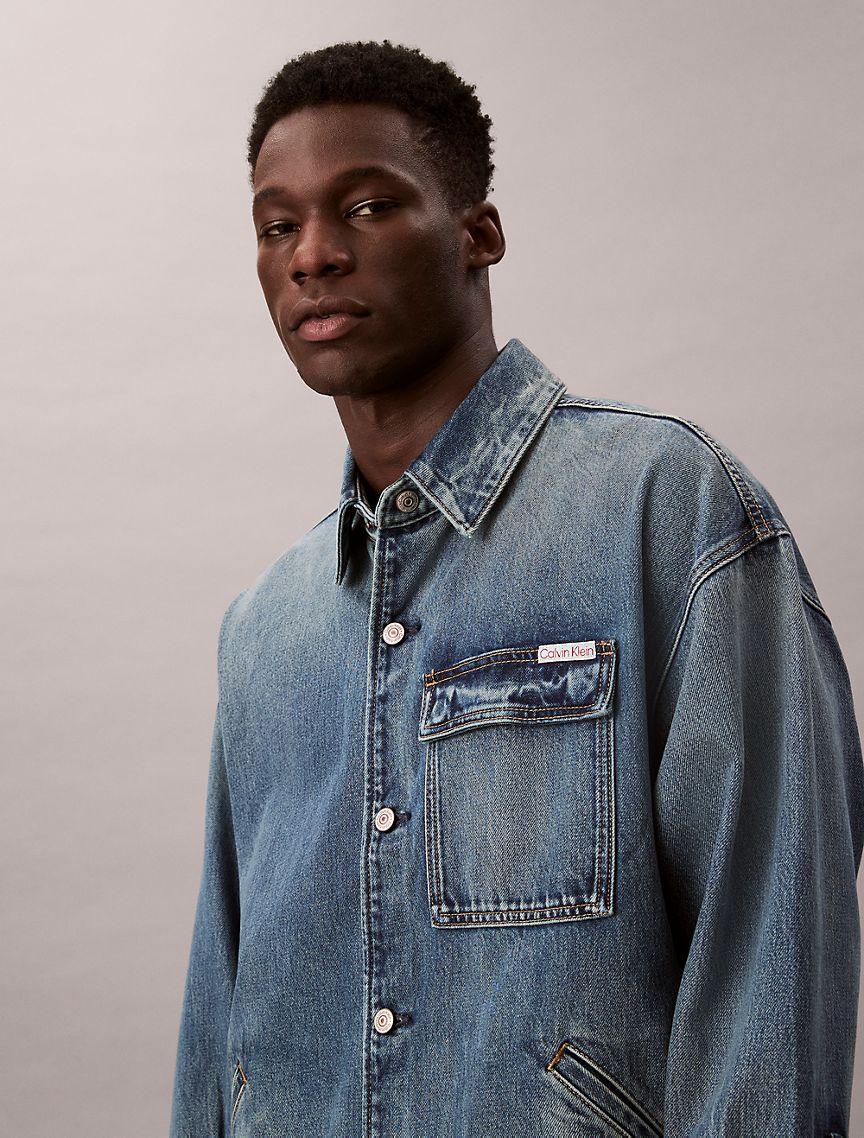 Calvin Klein for men. Refined classics for a curated wardrobe. Minimalist essentials in signature silhouettes. Faded denim with a relaxed feel. This jacket has long sleeves with snap buttons along the front. Styled with slip pockets at the sides and a patch pocket at the upper chest.