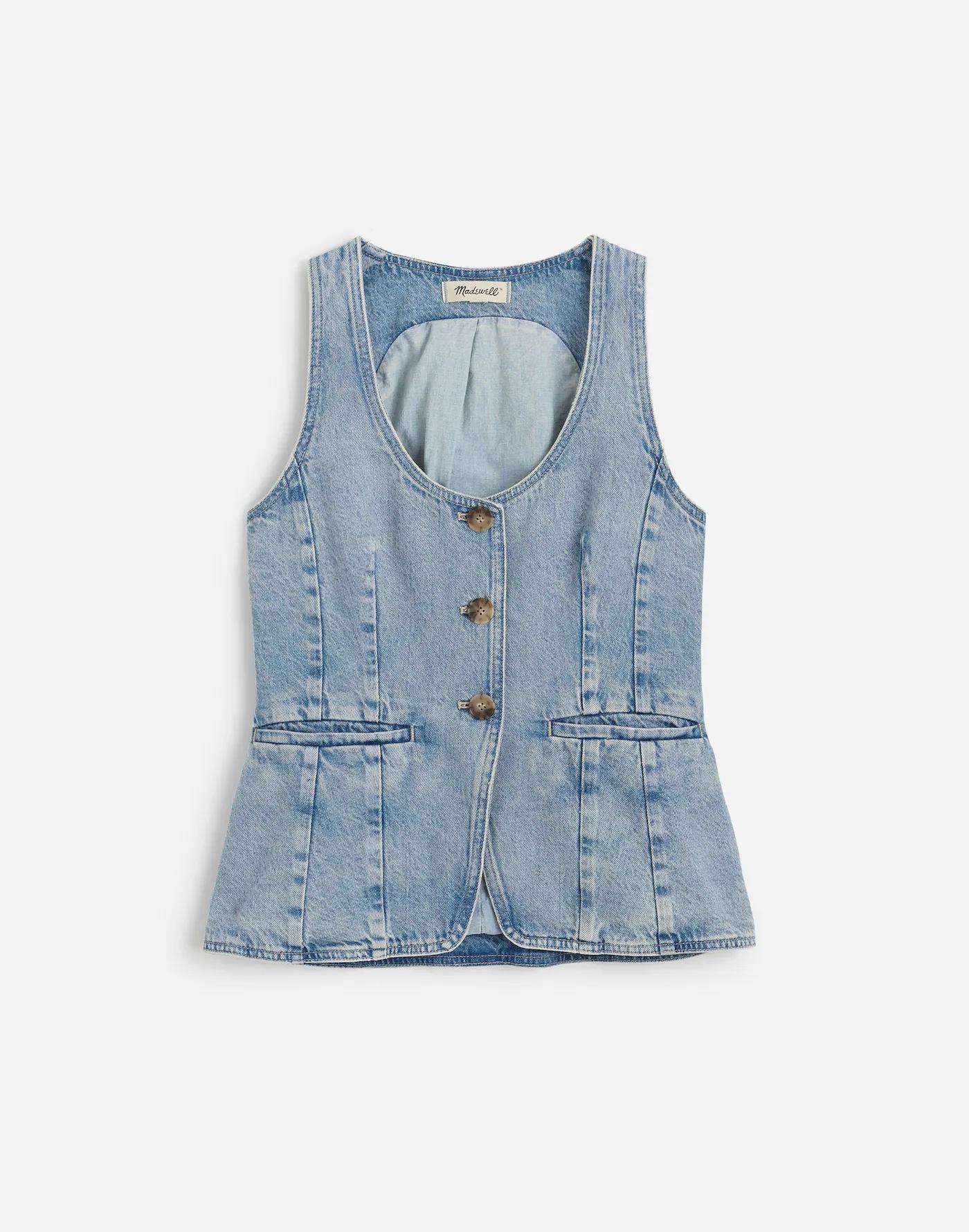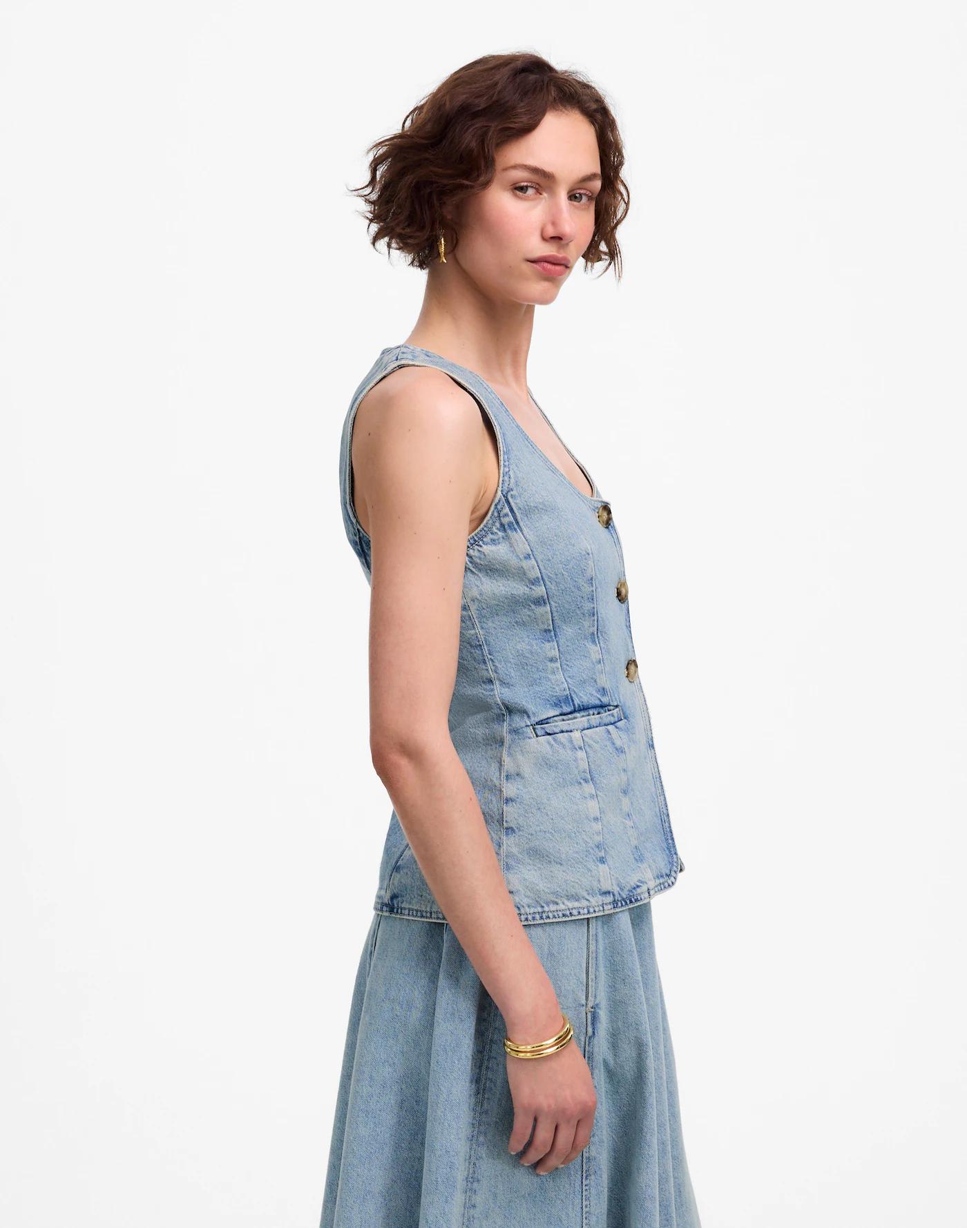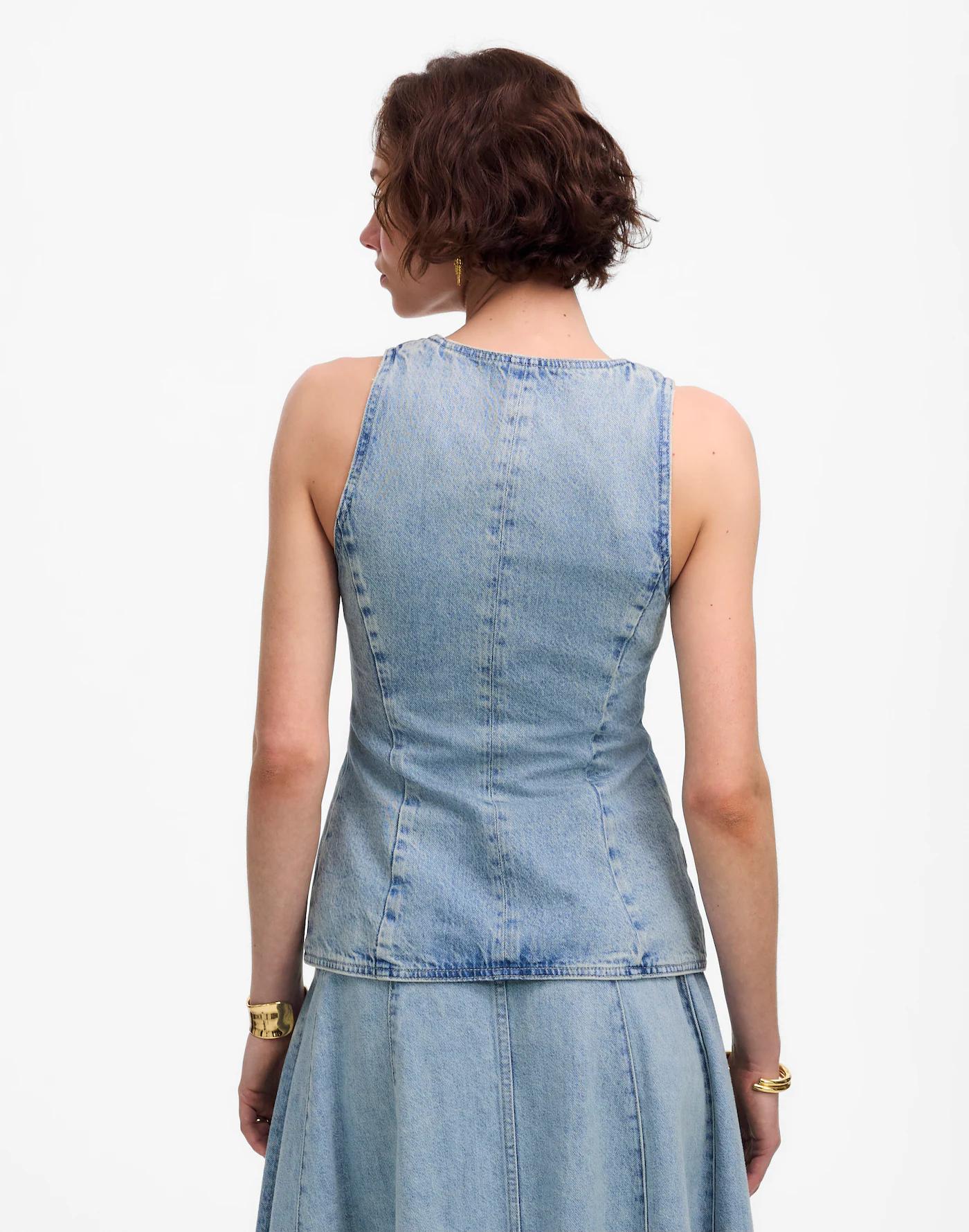 Denim Scoopneck Cutaway Vest in Edmonson Wash