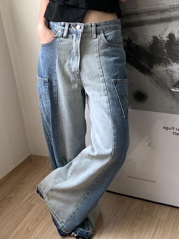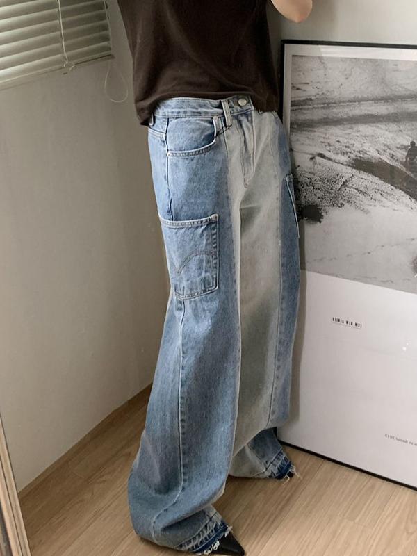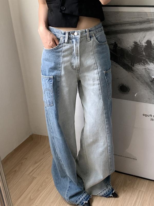 Denim Splice Side Pocket Low Rise Cargo Jeans
