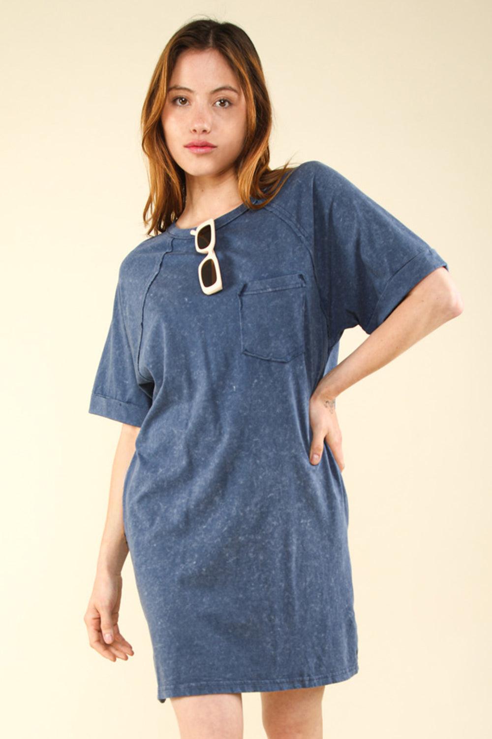 Cafe Meetup Vintage Wash T-Shirt Dress in Riverside