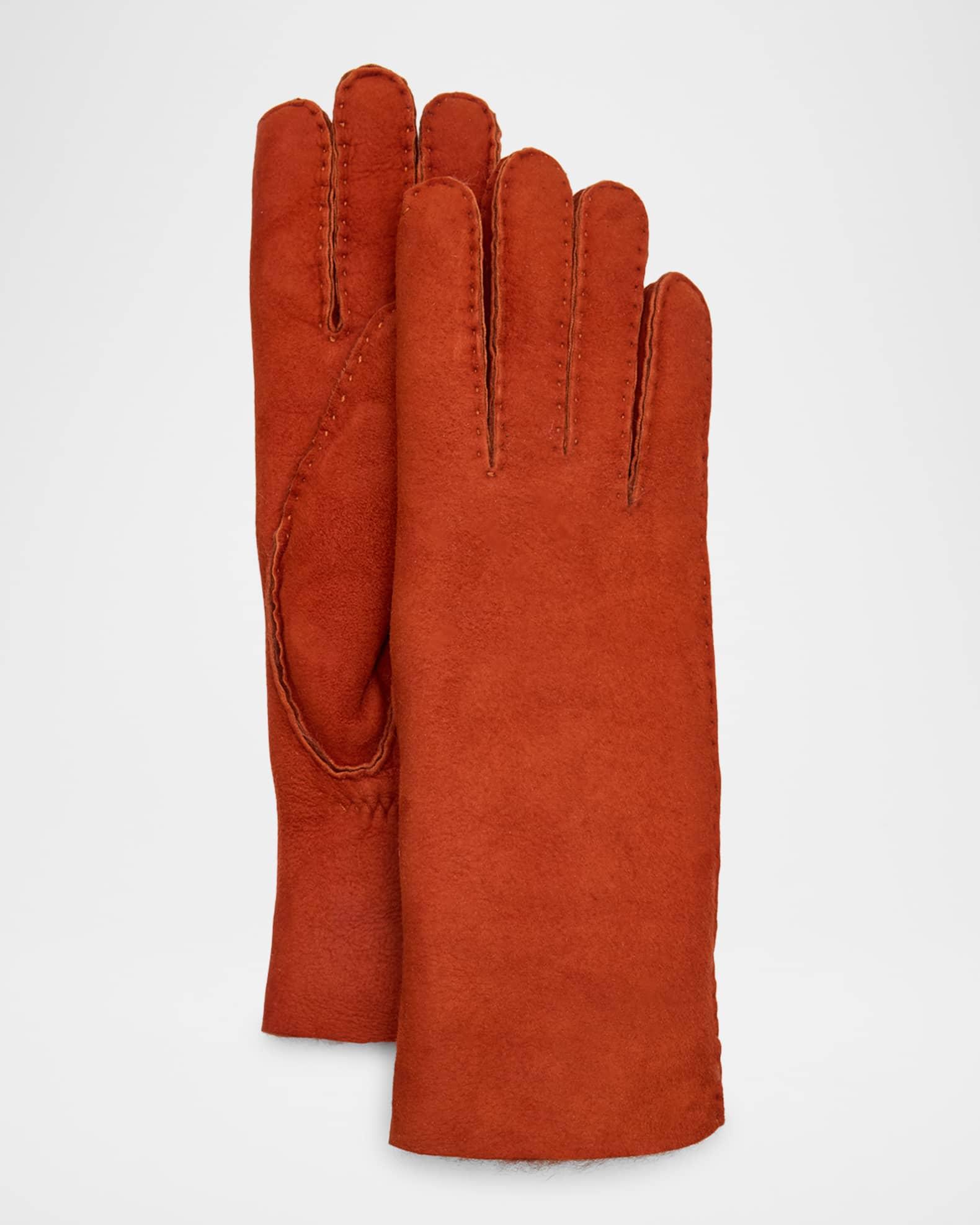 Agnelle "Denise" classic gloves in suede Cinch detail on cuffs Lining: Unlined Professional cleaning recommended Imported To determine your glove size, measure the circumference of your hand around your knuckles, excluding your thumb. Then pick your glove size based on the measurements below. For the most comfortable fit, you may want to go up a size if you fall in between these numbers. S=6 to 6 1/2 inches M=7 to 7 1/2 inches L=8 to 8 1/2 inches
