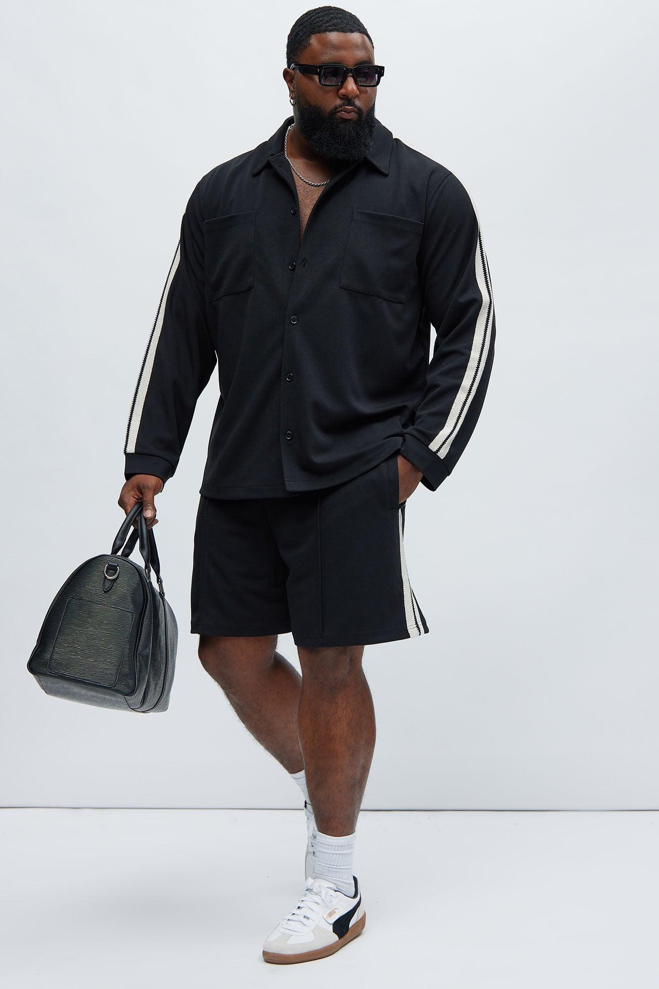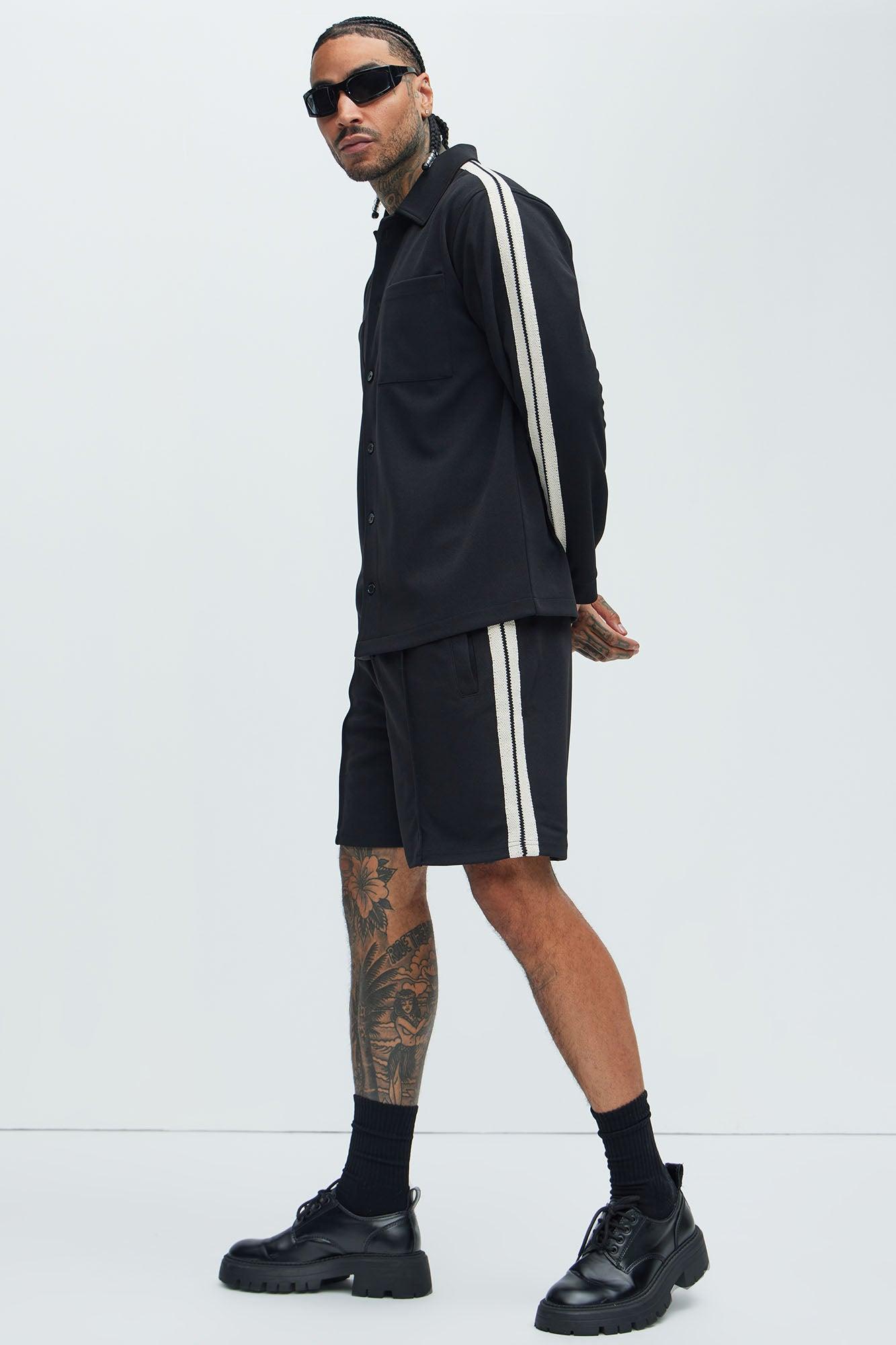 Available In Black and Olive Elastic Waistband Drawstring Side Pockets Side Stripe Detail Pair With "Dennis Pocket Knit Shirt" 100% Polyester Imported