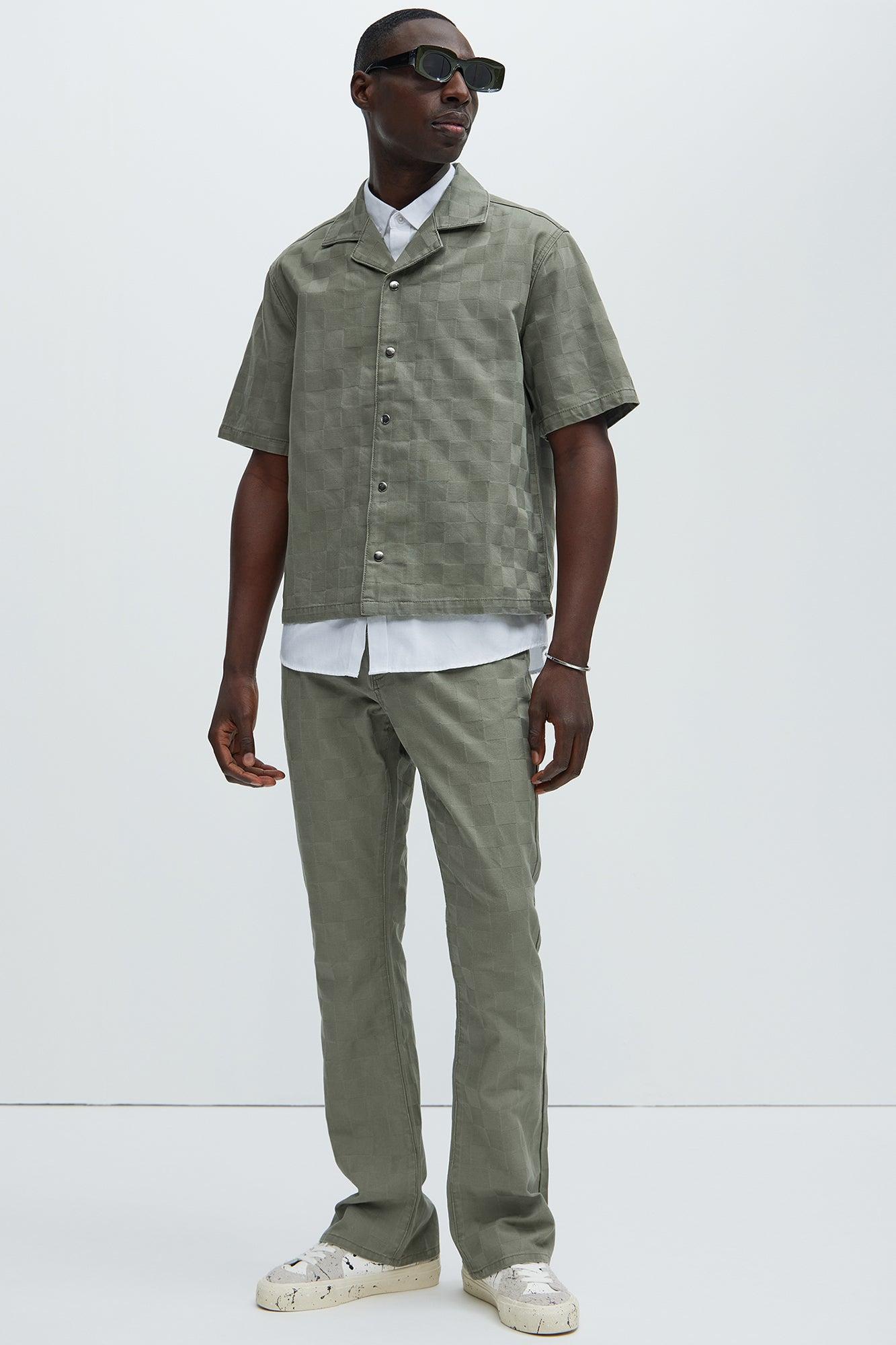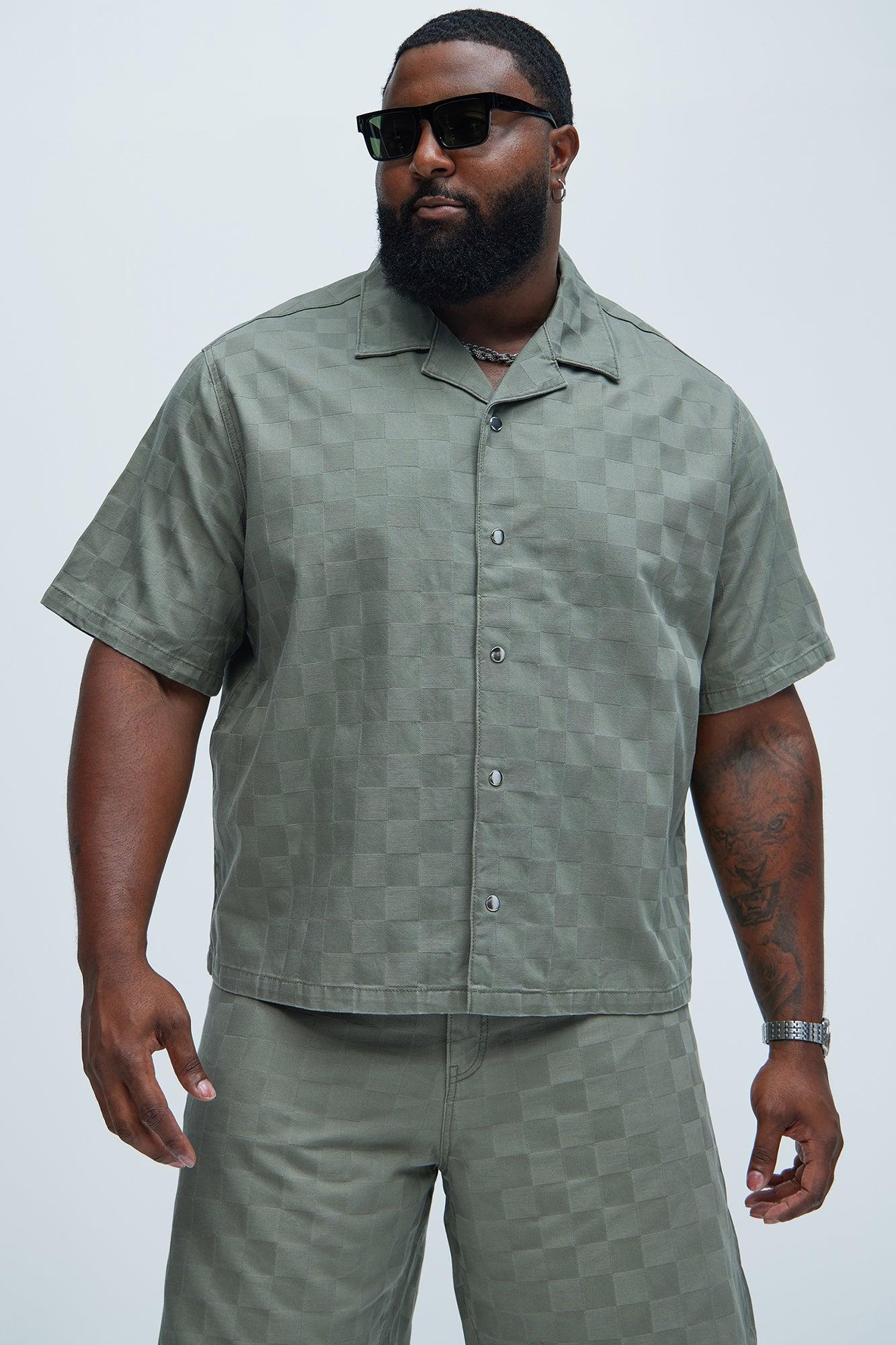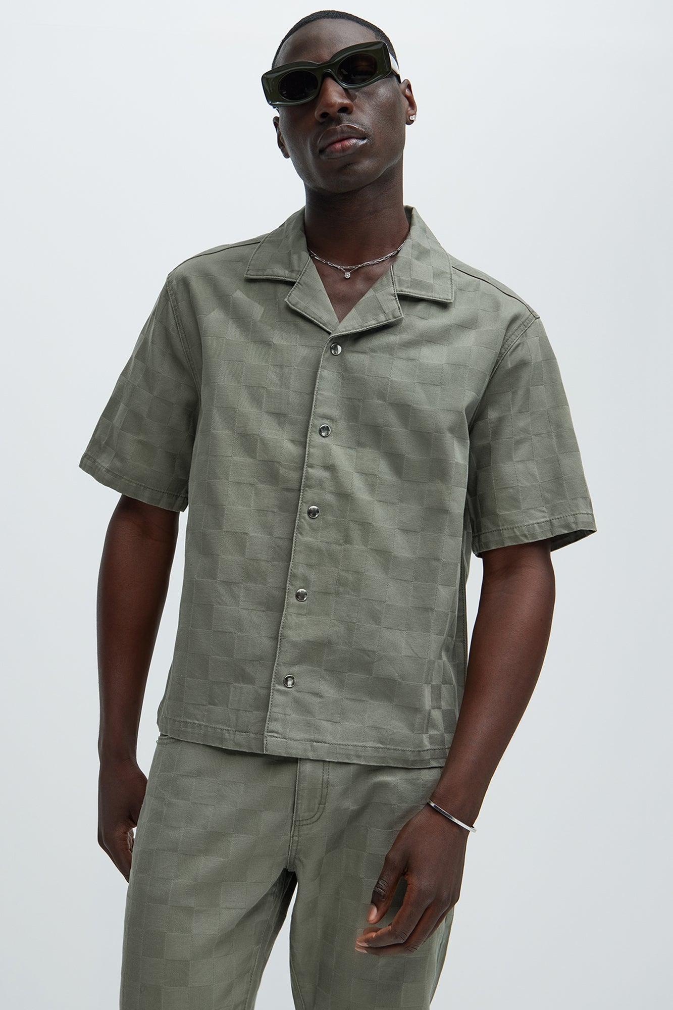 Available In Olive, Red, Off White Fold Down Collar Front Button Closure Short Sleeve Pair With "Deprime Stacked Slim Flare Pants" Or "Deprime Relaxed Denim Shorts" 100% Cotton Imported