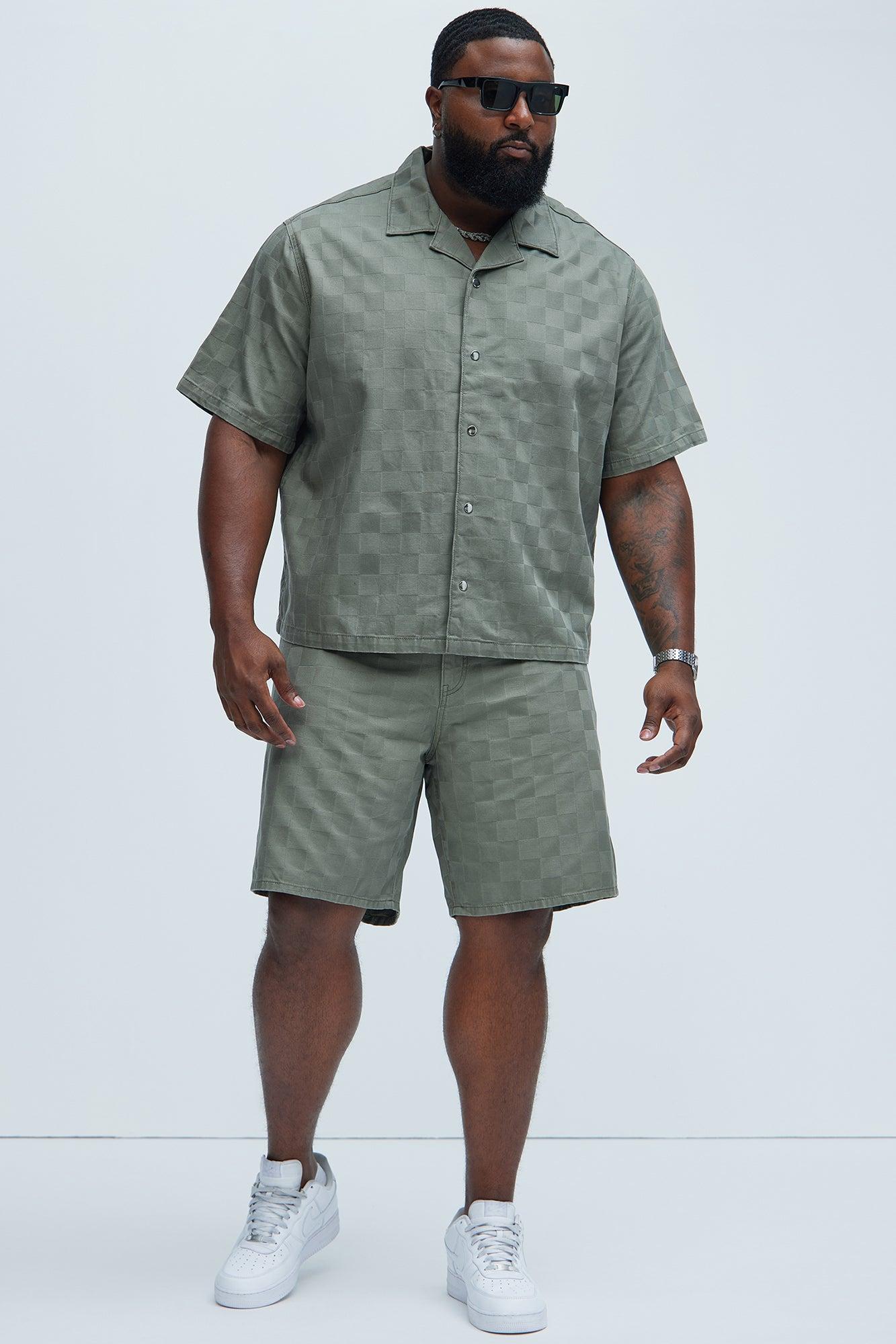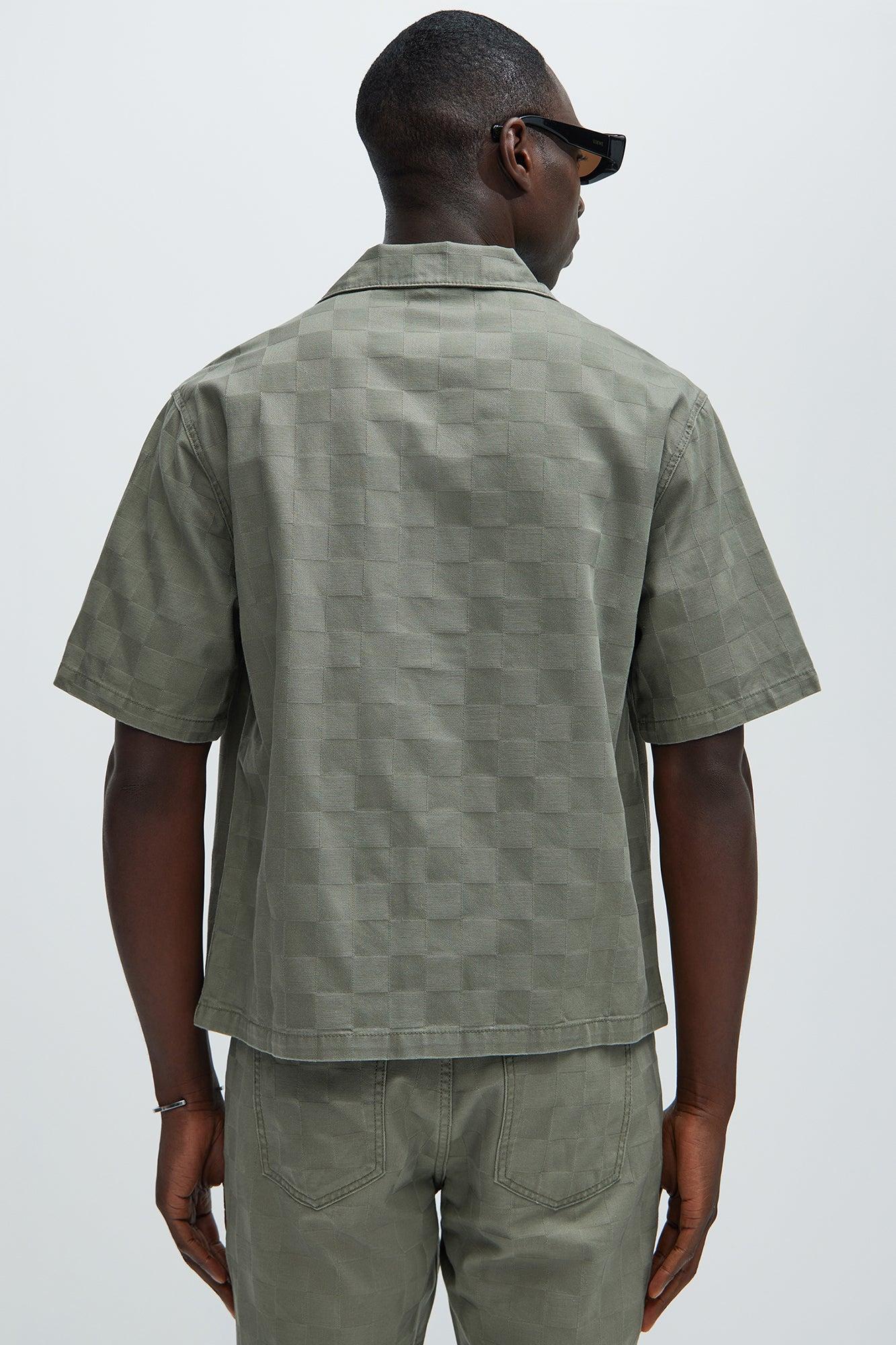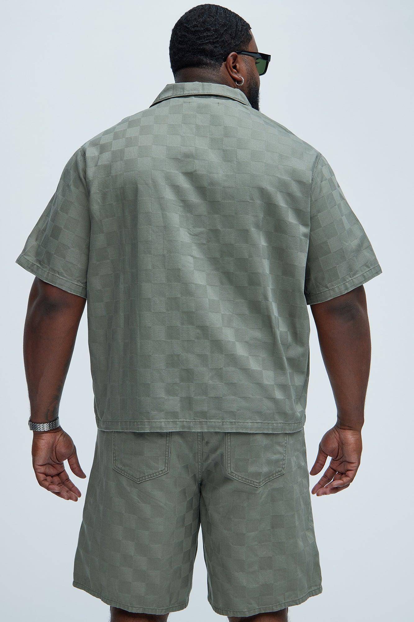 Available In Olive, Red, Off White Fold Down Collar Front Button Closure Short Sleeve Pair With "Deprime Stacked Slim Flare Pants" Or "Deprime Relaxed Denim Shorts" 100% Cotton Imported