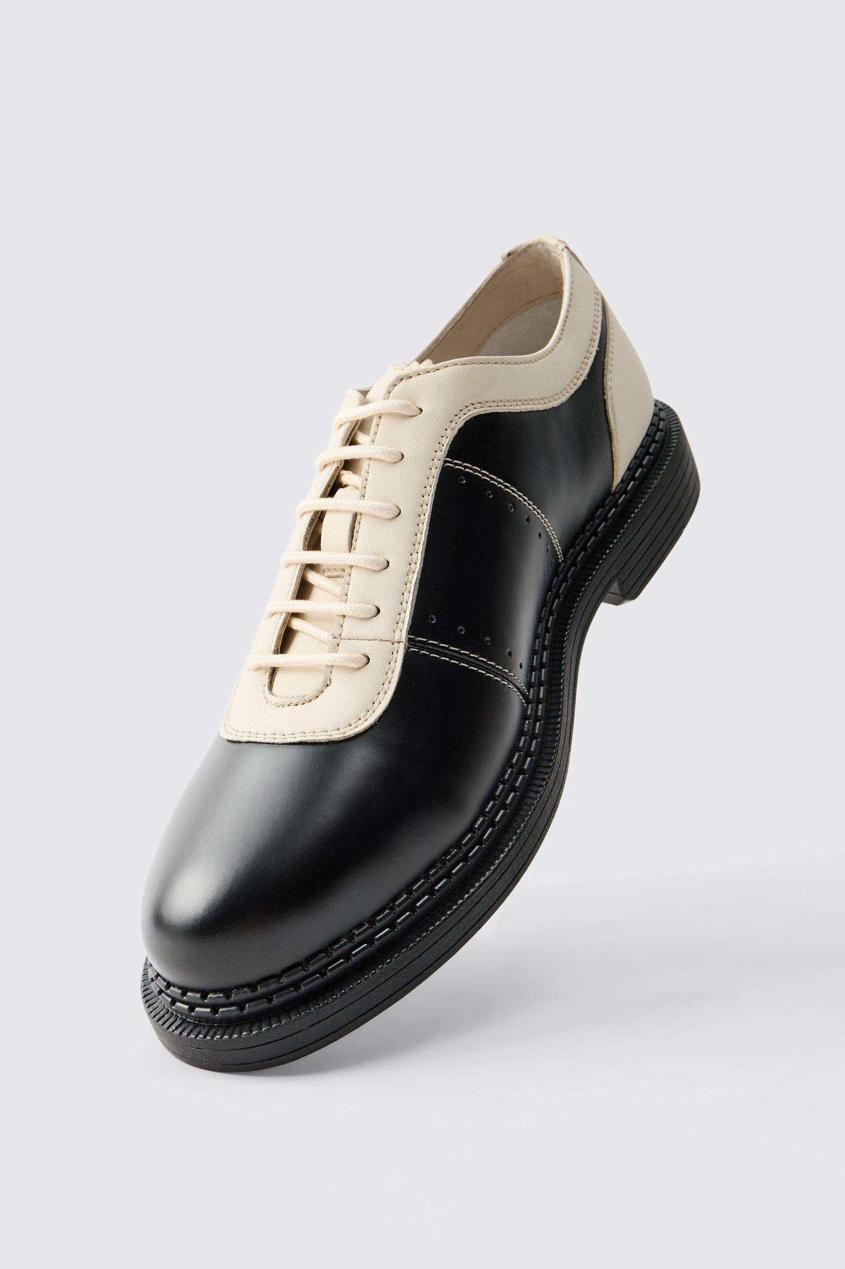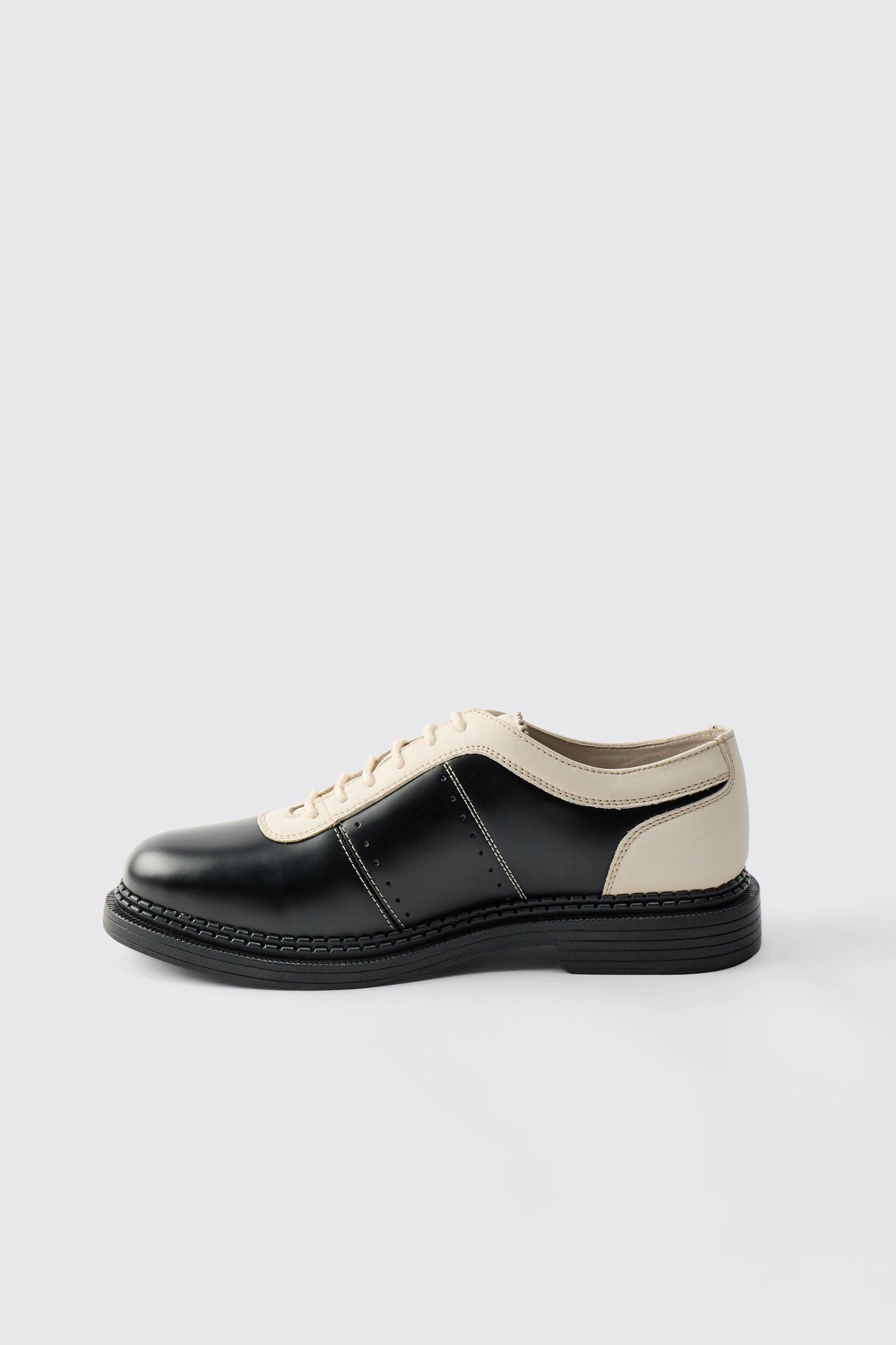 Smarten up any 'fit with a neat pair of men's shoes. Just as every man needs a slick suit in his fashion arsenal, no self-respecting gent can go without a handsome pair of smart shoes. boohooMAN's range has got you covered for every occasion, from classic Chelsea boots and shoes to dapper brogues and laid-back loafers. Grab a pair in understated matte black for your day-to-day office wear, then level up to shiny brogues to go for that big promotion. For warm weather affairs, how about some faux suede tan lace ups to finish off your white and tan outfits? Whatever look you're going for, lock down the details with the perfect pair of smart shoes. Style: Oxfords