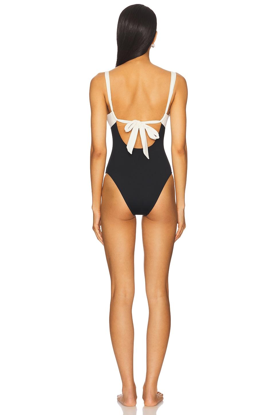 Self: 82% nylon, 18% spandexLining: 83% nylon, 17% spandex. Hand wash cold. Back tie closure. Unpadded unwired cups. Cheeky bikini back. Midweight swimwear fabric. Made in Colombia. Revolve Style No. LSPA-WX2167. Manufacturer Style No. CBDNMC25.