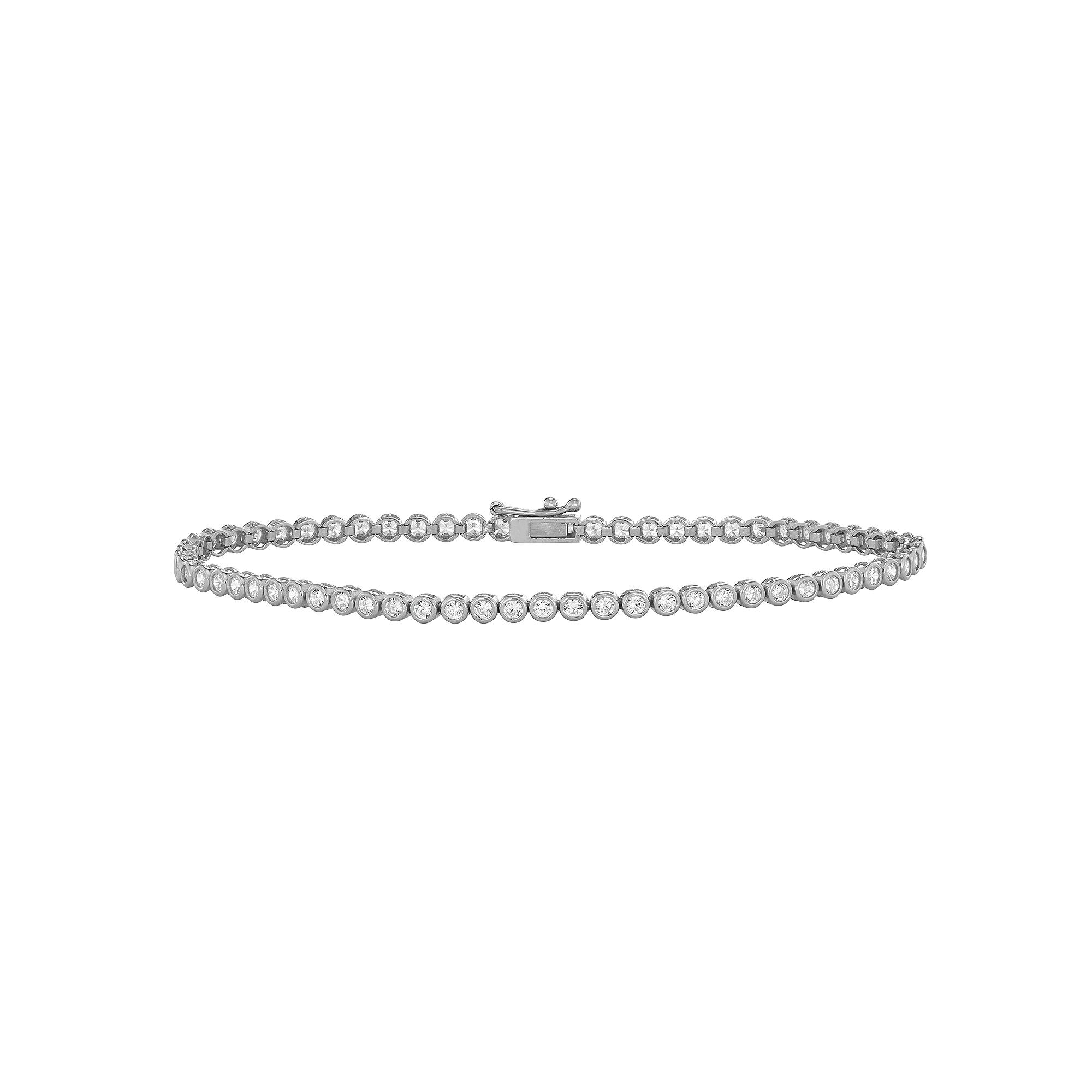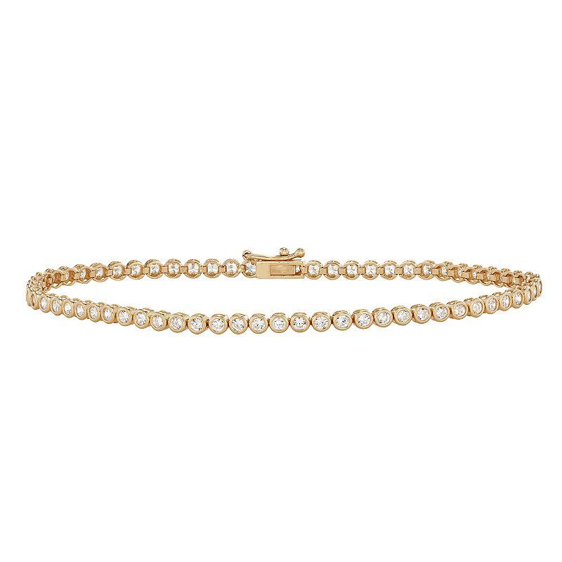 Versatile and elegant, this 10k gold cubic zirconia tennis bracelet is a jewelry collection essential. Versatile and elegant, this 10k gold cubic zirconia tennis bracelet is a jewelry collection essential. Length: 7.25 in. Clasp: safety clasp Metal: 10k gold Packaging: boxed CUBIC ZIRCONIA DETAILS Total weight: 3 5/8 ct. Shape: round Setting: bezel Please note, a signature may be required upon delivery. Size: 7". Color: White. Gender: female. Age Group: adult.
