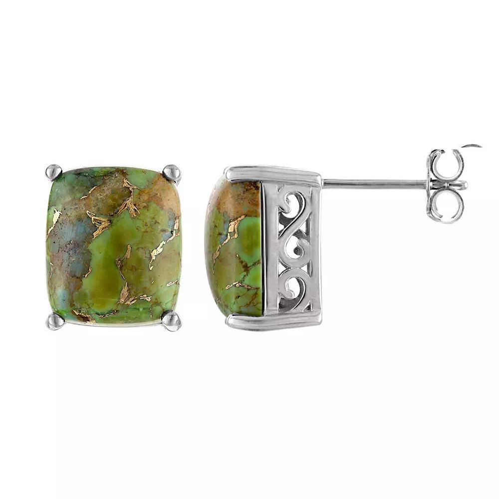 These unique Designs by Gioelli Sterling Silver Copper Turquoise Stud Earrings have gorgeous color and intricate beauty that will take any look to the next level. Click on this JEWELRY & WATCHES GUIDE to learn about fit, styles, materials and more! These unique Designs by Gioelli Sterling Silver Copper Turquoise Stud Earrings have gorgeous color and intricate beauty that will take any look to the next level. Click on this JEWELRY & WATCHES GUIDE to learn about fit, styles, materials and more! FEATURES 12 mm x 10 mm Backings: post Nickel free Metal: sterling silver Plating: sterling silver Finish: polished Packaging: boxed ImportedSTONE DETAILS Stone type: turquoise Shape: octagon Setting: prong Size: One Size. Color: Green. Gender: female. Age Group: adult.