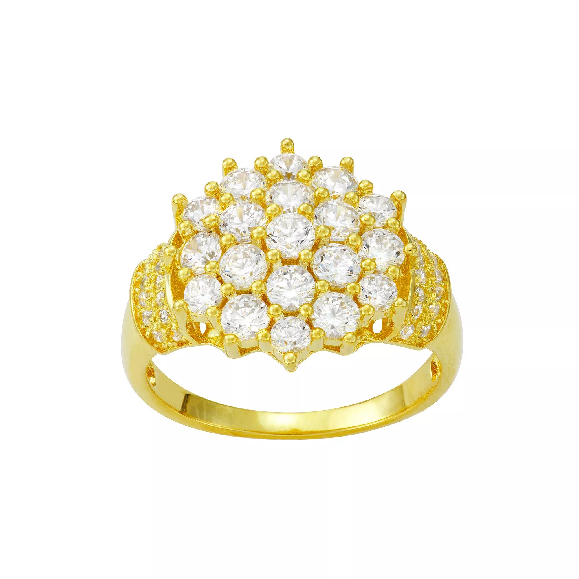 This sterling silver cubic zirconia pave ring is the perfect way to finish any outfit. This sterling silver cubic zirconia pave ring is the perfect way to finish any outfit. Metal: sterling silver Plating: 14k gold Packaging: boxed Width: 10 mm Finish: polishedSTONE DETAILS Stone type: cubic zirconia Total weight: 3 1/2 ct. Shape: round Setting: prong Gemstones may have been treated to enhance their appearance. Special care may be required. Please visit our Gemstone Treatment & Special Care Guide for more information. Please note, due to the high value of this item, a signature may be required upon delivery. Size: 5. Color: Yellow. Gender: female. Age Group: adult.