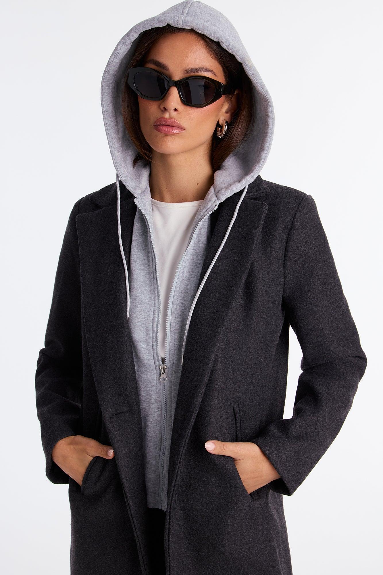 Desiree Hooded Two-fer Coat - Black/combo Female