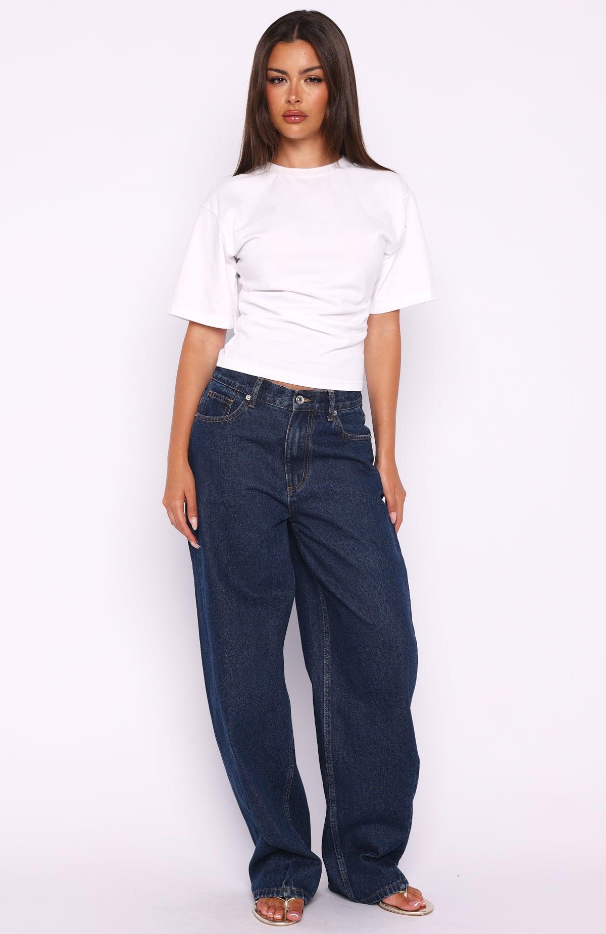 Wear it on repeat. The Destination Unknown Boxy Tee White is your new wardrobe staple! Featuring a high cut, ribbed neckline, unlined material, side pleated detailing and back panel design for a cinched look and drop shoulder design. Complete the look with a mini skirt and layered gold accessories for a fit we adore!