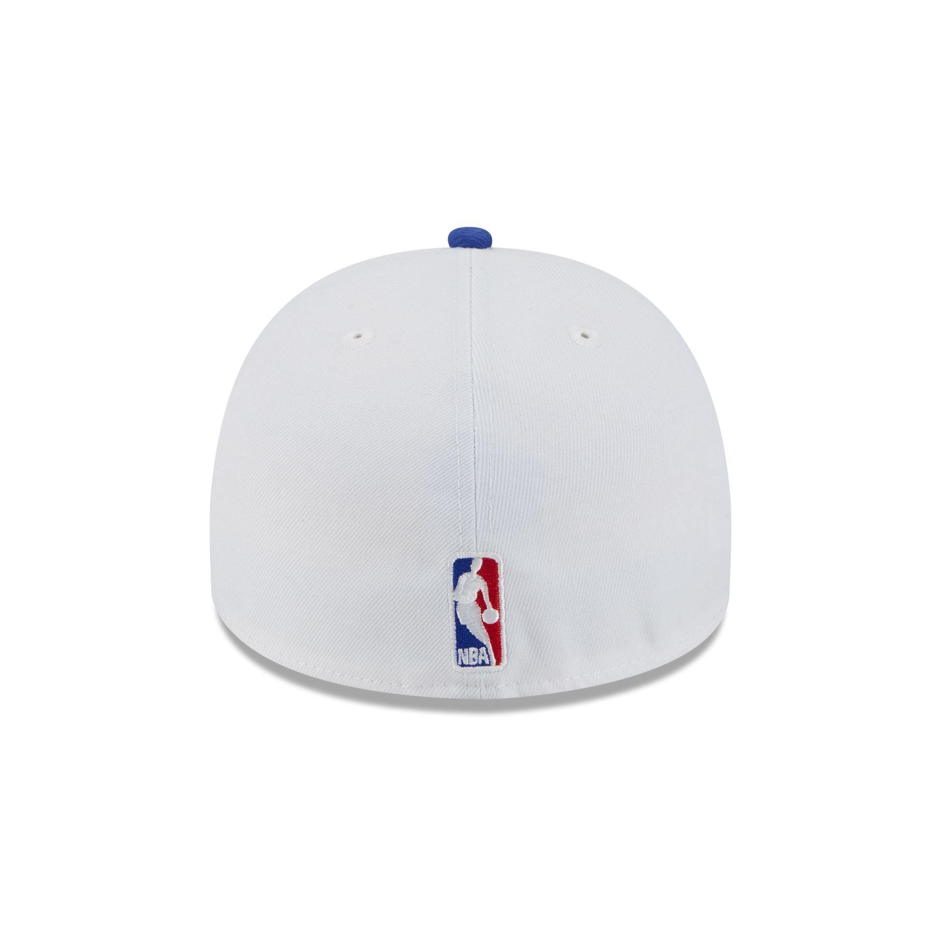 The Detroit Pistons 2025 Draft 59FIFTY A-Frame Fitted Cap features an embroidered Pistons script wordmark at the front panels with a team logo at the right-wear side. Additional details include a NBA Logoman at the rear and a gray undervisor.