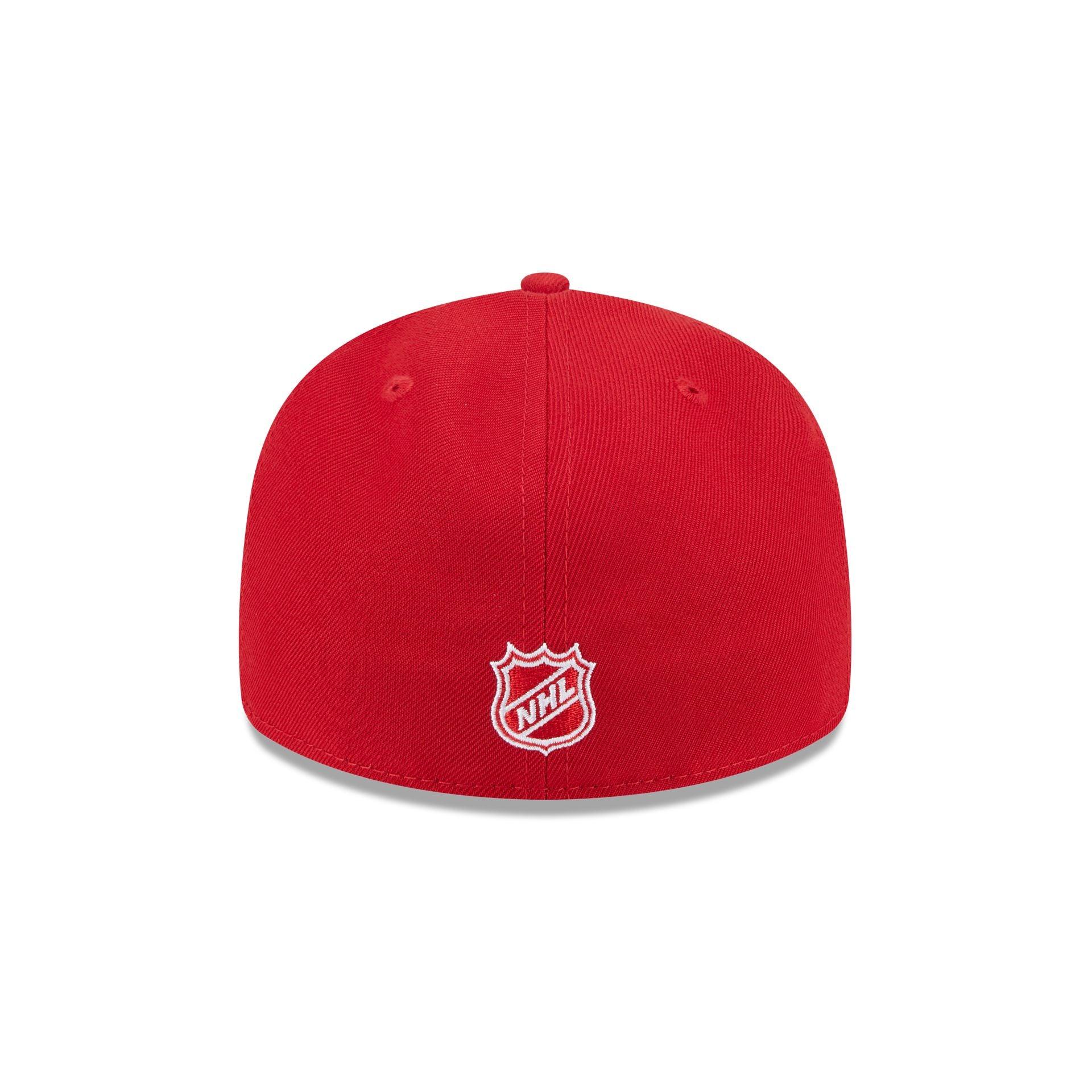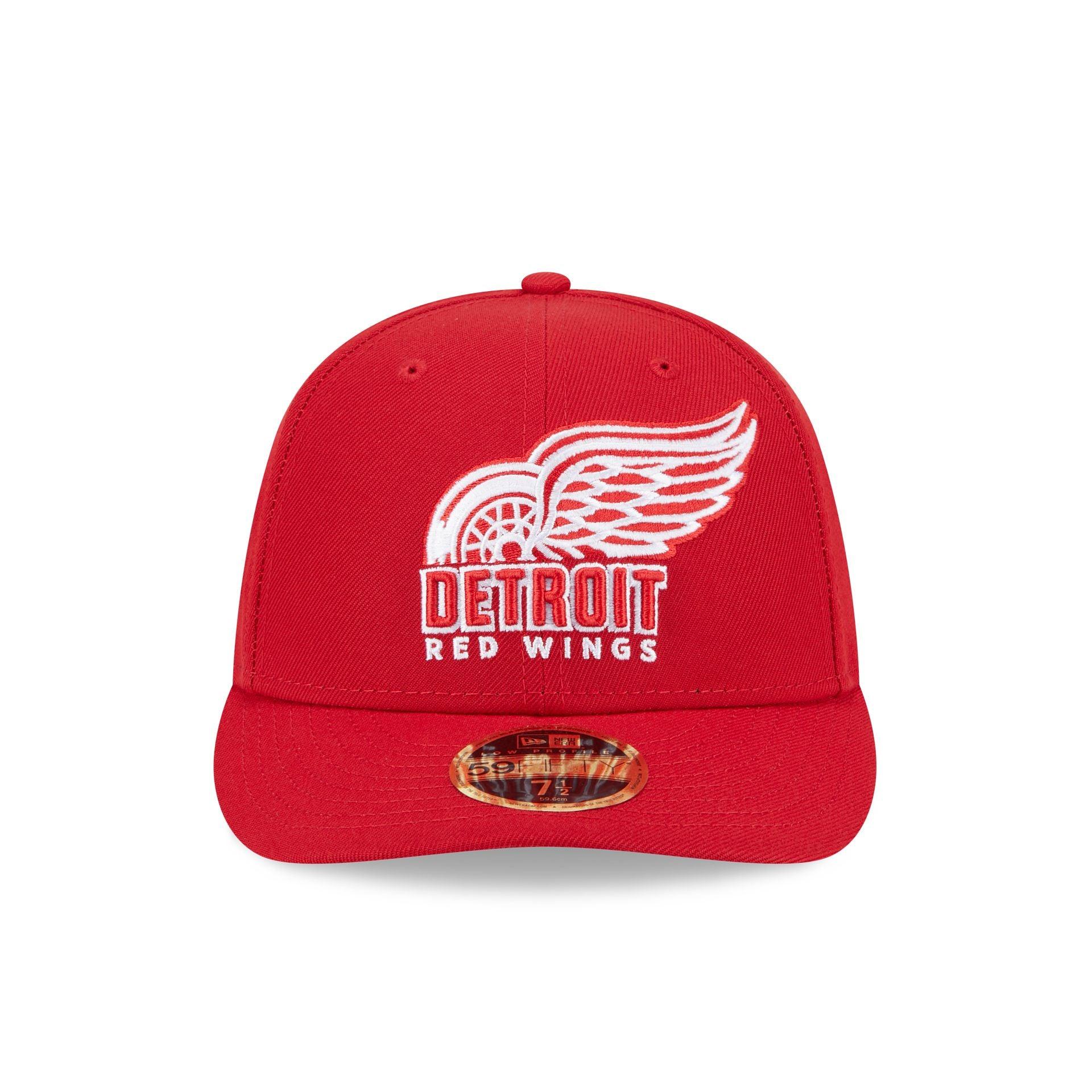 The Detroit Red Wings NHL Pack Low Profile 59FIFTY Fitted Cap features an embroidered Red Wings wordmark over a team logo at the front panels with a matching NHL Shield at the rear. Additional details include a team logo at the right-wear side with a green undervisor.