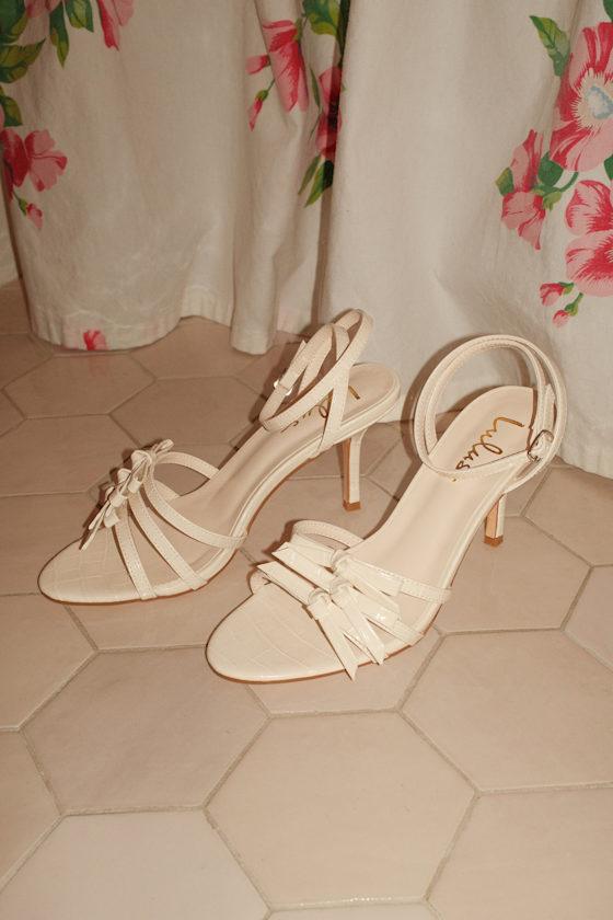 The Lulus Devereux Bone Croc-Embossed Bow High Heel Sandals are as fierce as they are sweet, making them the perfect strut-worthy pick! Croc-embossed faux leather shapes these too-cute heels with an almond-shaped footbed and a trio of vamp straps that boast slender bow details. A matching ankle strap sprouts from the sides and secures around the ankle with a silver buckle, all atop a classic stiletto heel.