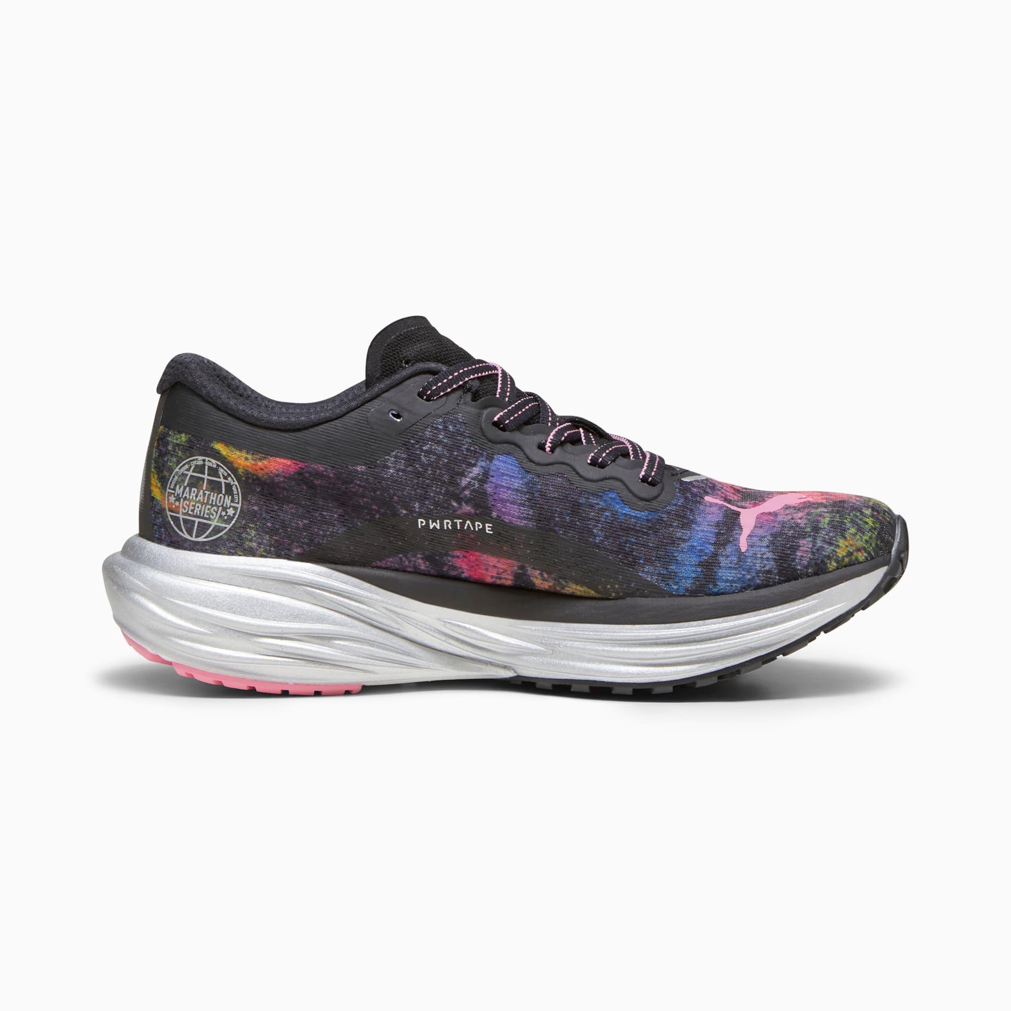 descriptionThe Deviate NITRO™ 2 – it's just like v1, only better. This 'Marathon Series' rendition of the shoe ticks all the boxes: max cushioning, max performance, to make going faster even easier. Starting with an updated NITROFOAM™ for improved responsiveness, we've also outfitted the running shoe with an integrated carbon fibre PWRPLATE that will help you reach max propulsion from toe-off. We're finishing off with a reworked, cushioned collar to reduce heel slip, and a lighter, asymmetrical base that works better with your body to get you to the finish line.Style: 378684_01Color: PUMA Black-Strawberry Burst-Yellow Blaze features & benefits details materials & care